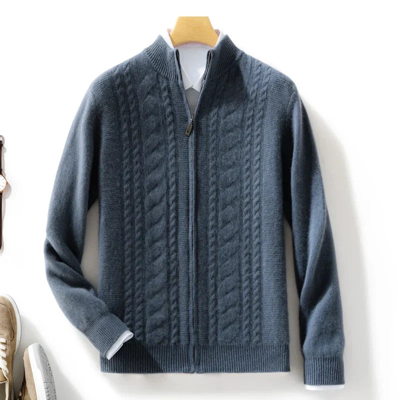 Crafted from premium cashmere the Lucian Cardigan provides a soft, breathable feel that delivers all-day comfort. Designed with a full zip front and subtle cable detailing, it strikes the balance between casual ease and elevated sophistication.
