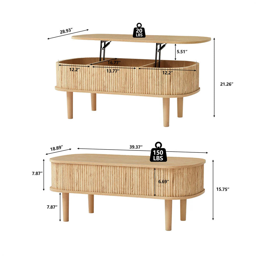 Modern Design: Elevate your living room or office with our Lift Top Coffee Table. The fluted panel design is unique and elegant, while the wood grain table top creates the natural beauty of a rustic coffee table. The mid-century design makes the coffee table more modern, providing the perfect blend of style and functionality.