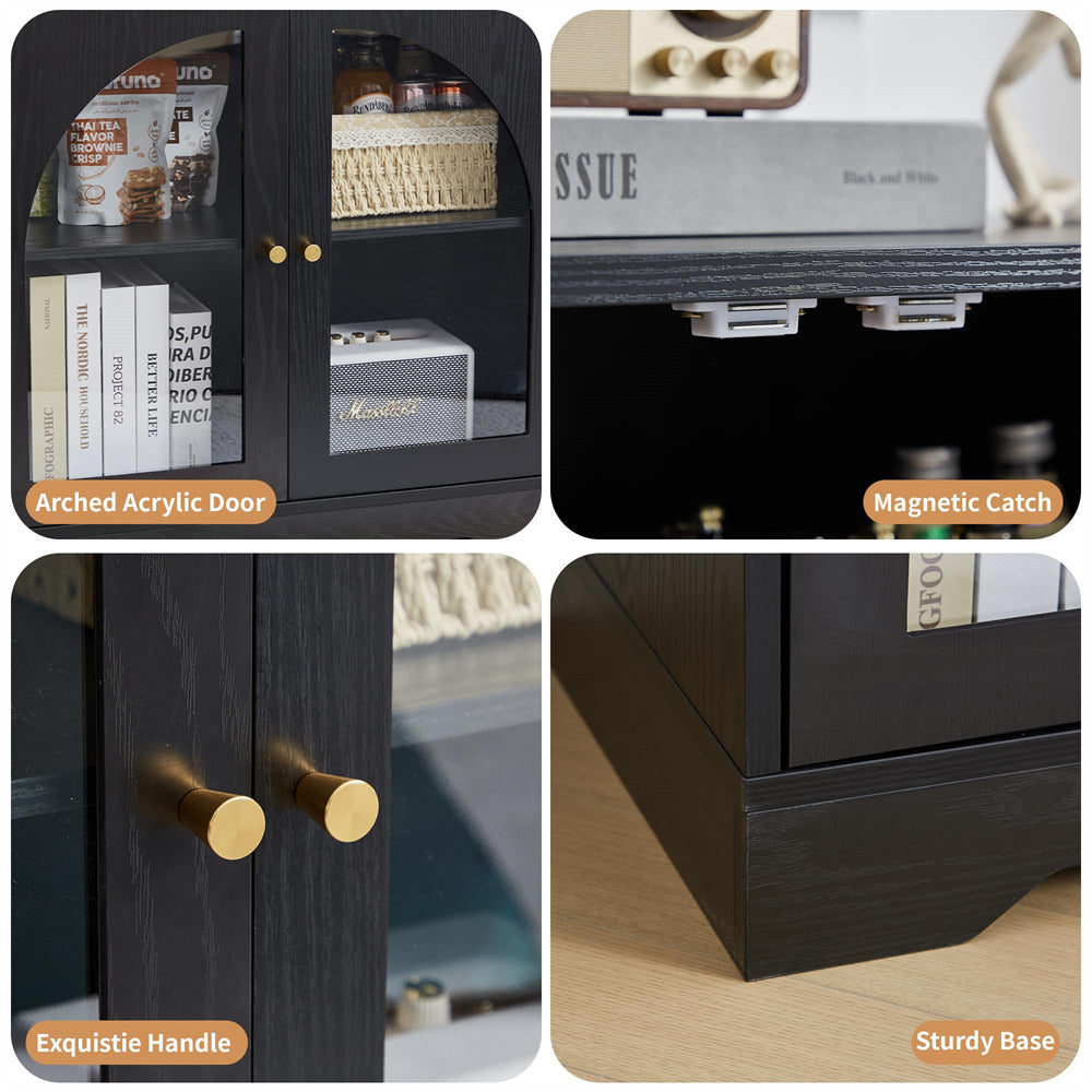 QUALITY & DURABLE --- Featuring acrylic glass doors and a sturdy MDF board structure, this cabinet adds a modern touch to any space. The cabinet is equipped with reinforced corners and an anti-scratch coating. The impact-resistant acrylic door panels maintain their transparency over time, while the sturdy frame structure effectively prevents deformation.