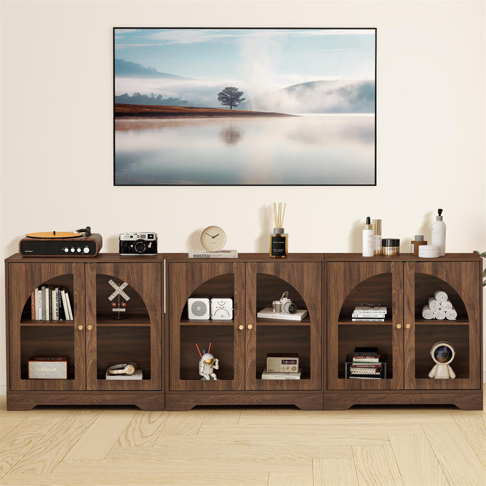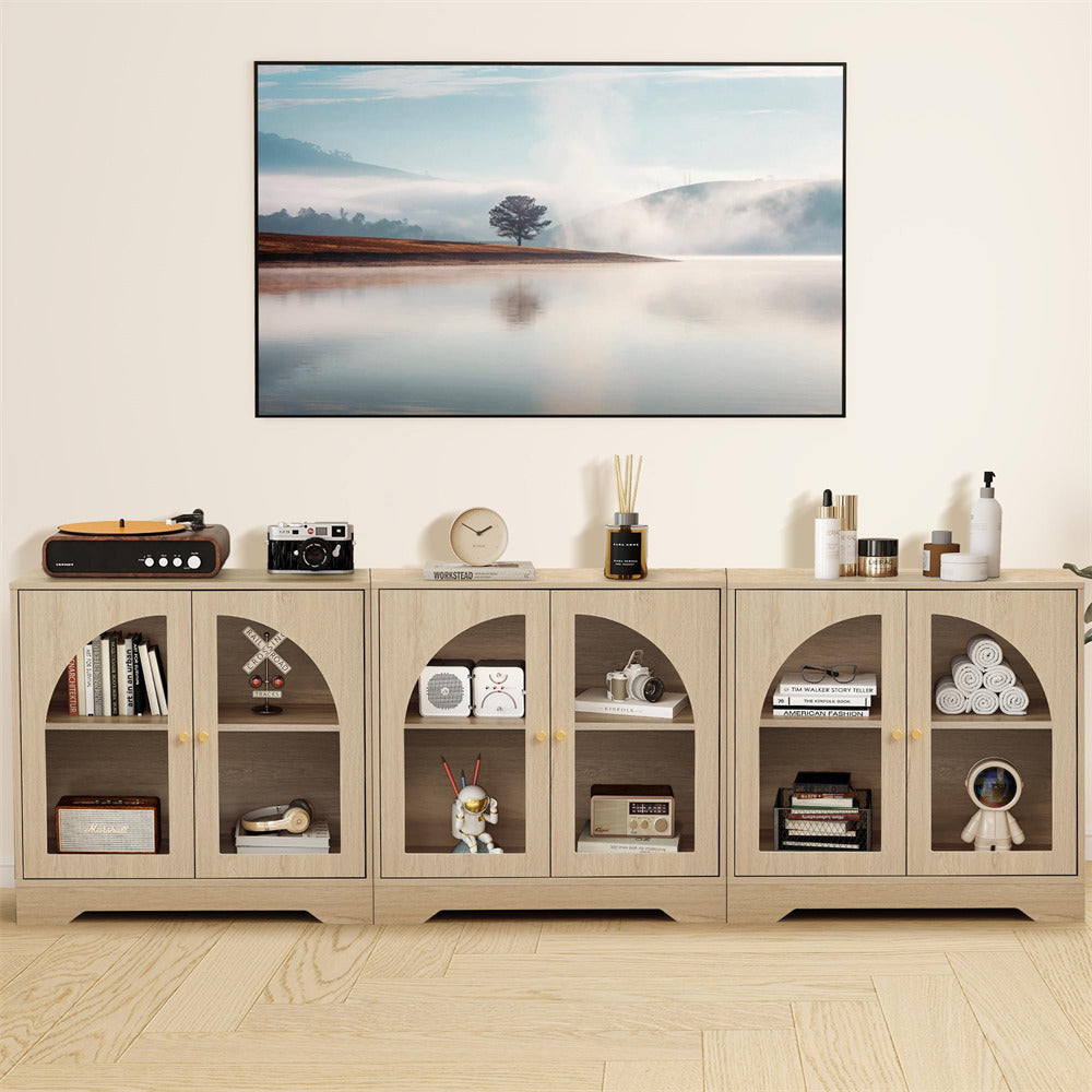 STYLISH & FUNCTIONAL --- This elegant storage cabinet blends modern aesthetics with practical functionality.The transparent door allows easy viewing while keeping contents dust-free. Perfect as a kitchen buffet, bathroom organizer, or living room sideboard, its versatile design complements various decor styles from minimalist to rustic.