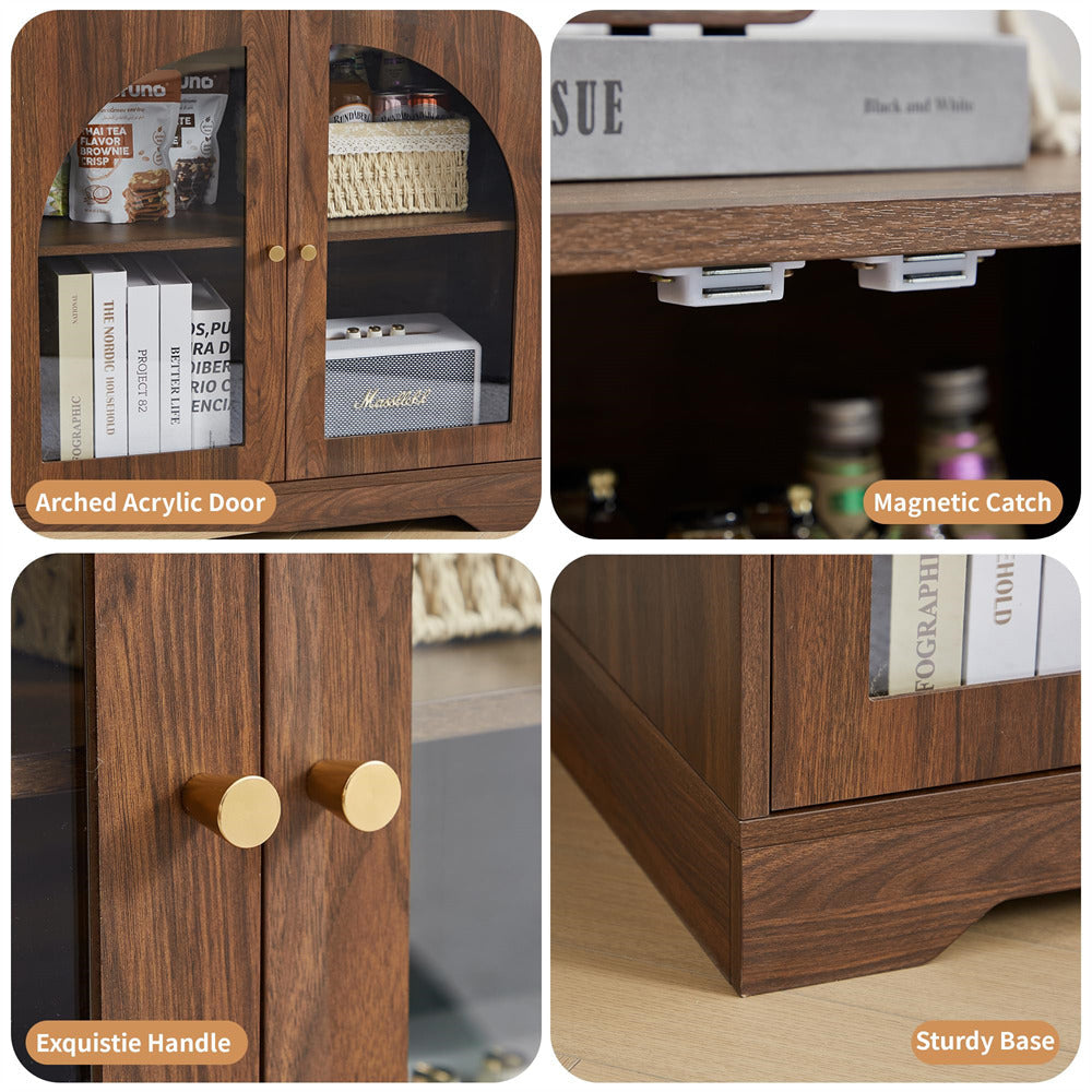 SAVE SPACE --- This storage cabinet is designed to fit into small spaces, with a slim design that perfectly suits small kitchens, cozy dining areas, or compact bathrooms. It can be used to organize countertop clutter, store toiletries, or display decorative items. Neutral color options (walnut/white/black) seamlessly blend with existing decor styles.