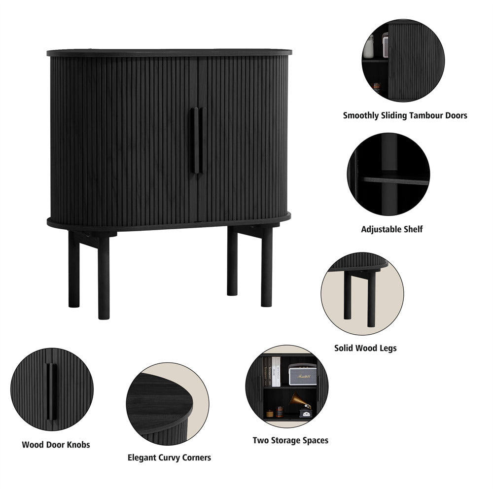 31'' Buffet Sideboard Small Bar Cabinet with Fluted Slide Doors
