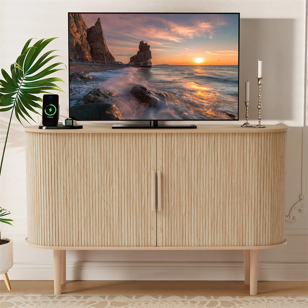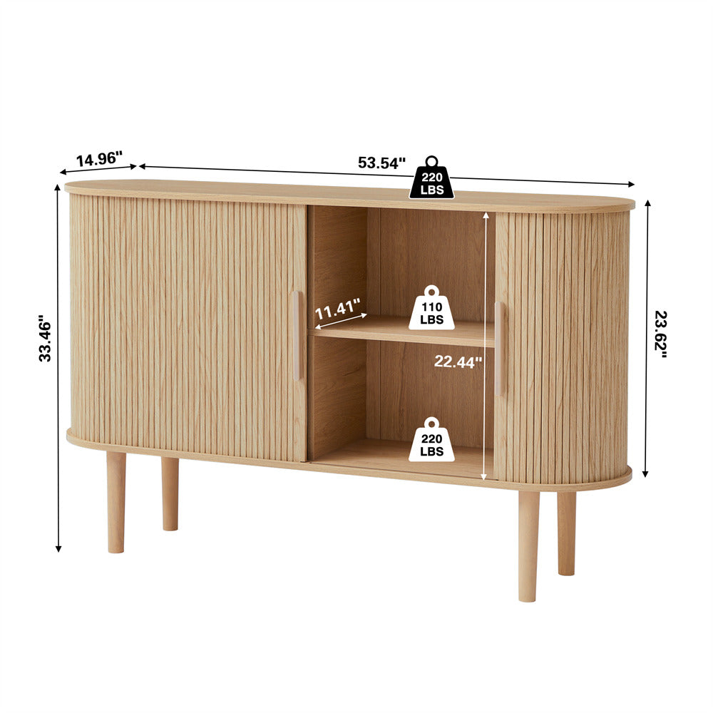 Walnut 53''Sideboard Buffer Cabinet with Fluted Slide Doors image1