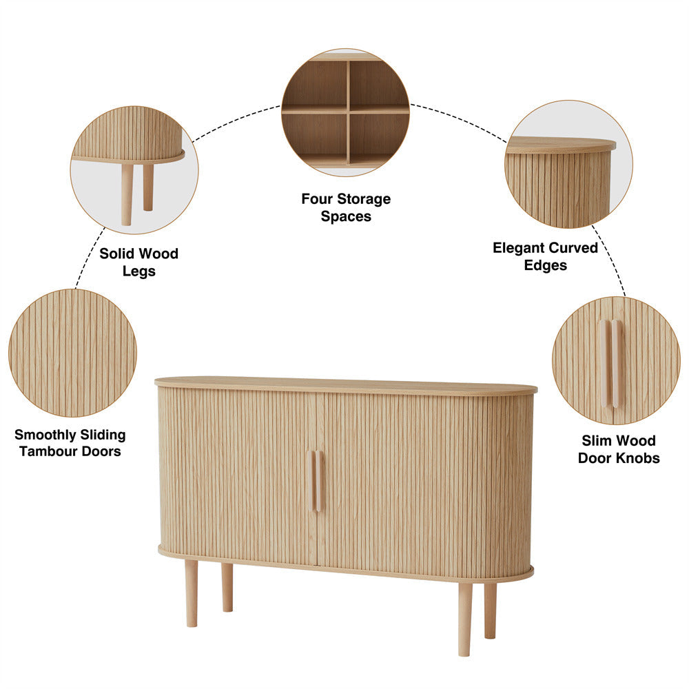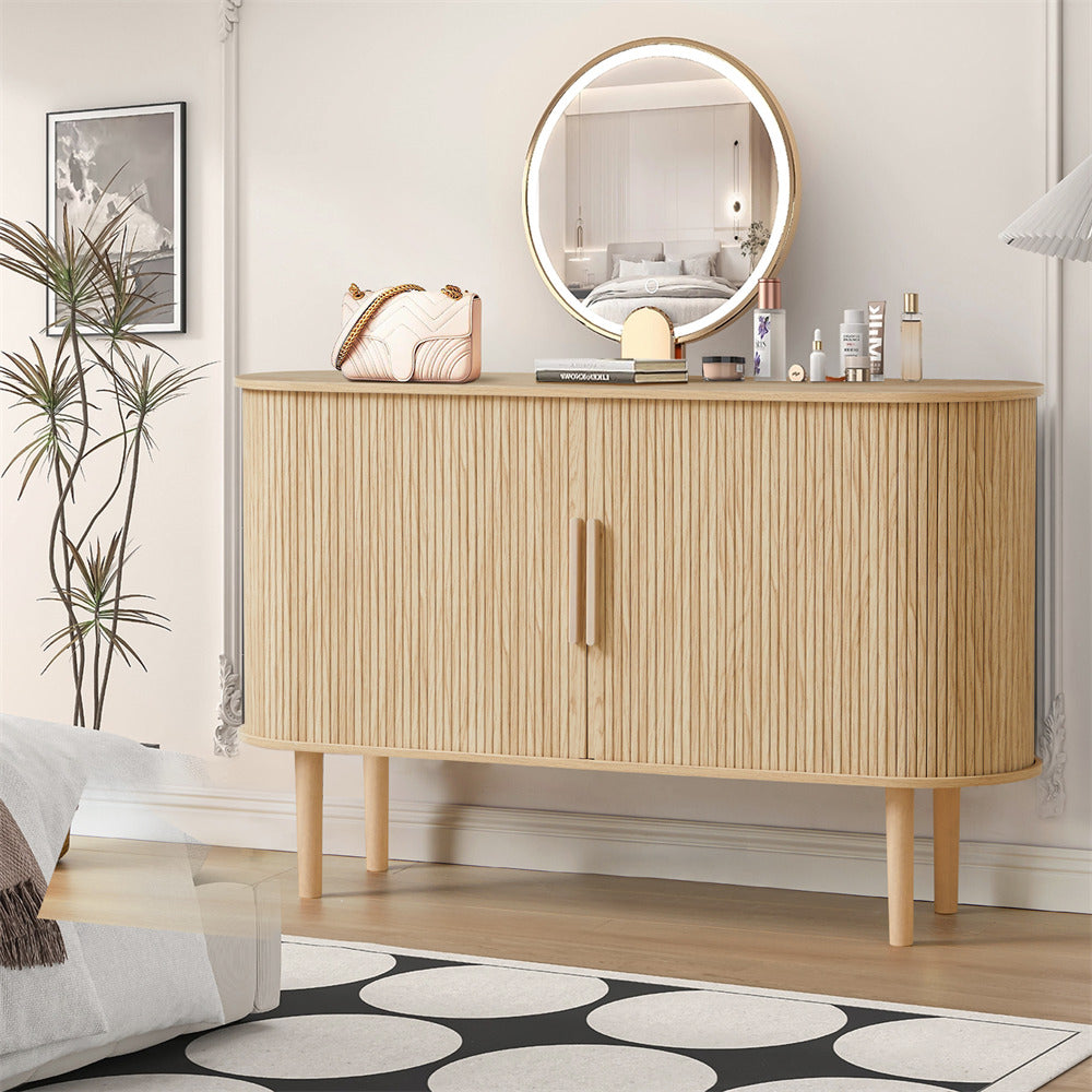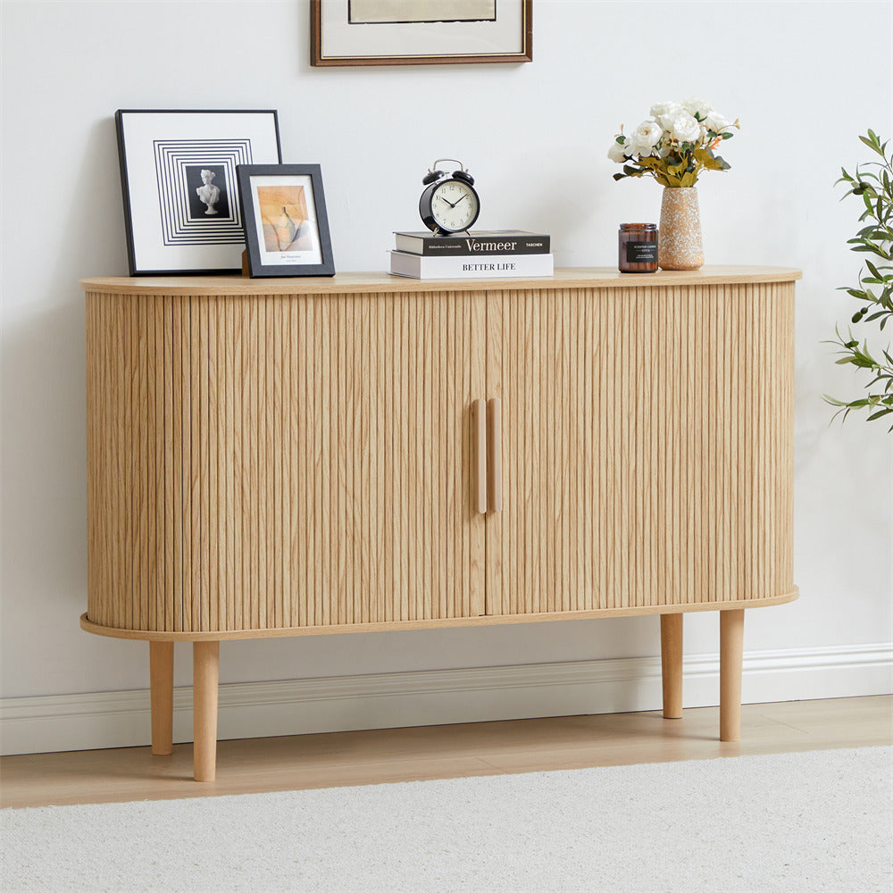 Modern Fluted Sideboard:This fluted-door sideboard is bound to instantly upgrade your dining space, living room, or entryway with its minimal build and versatile storage. With adjustable shelving and wide surface space, this piece can easily transition into a TV stand, bar cabinet, a space for spare linens, or a place to debut your dishware, wine cup.