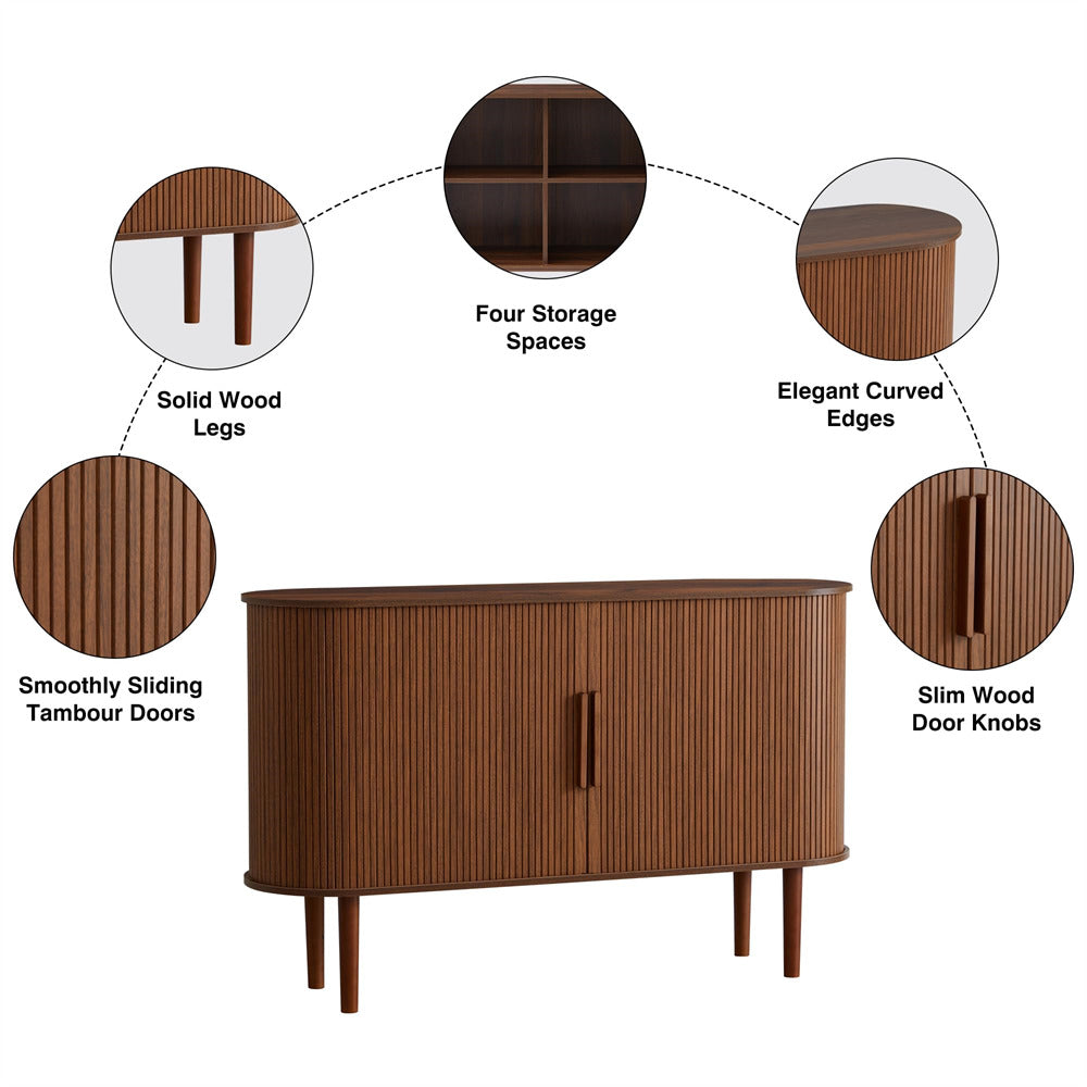 Walnut 53''Sideboard Buffer Cabinet with Fluted Slide Doors image4
