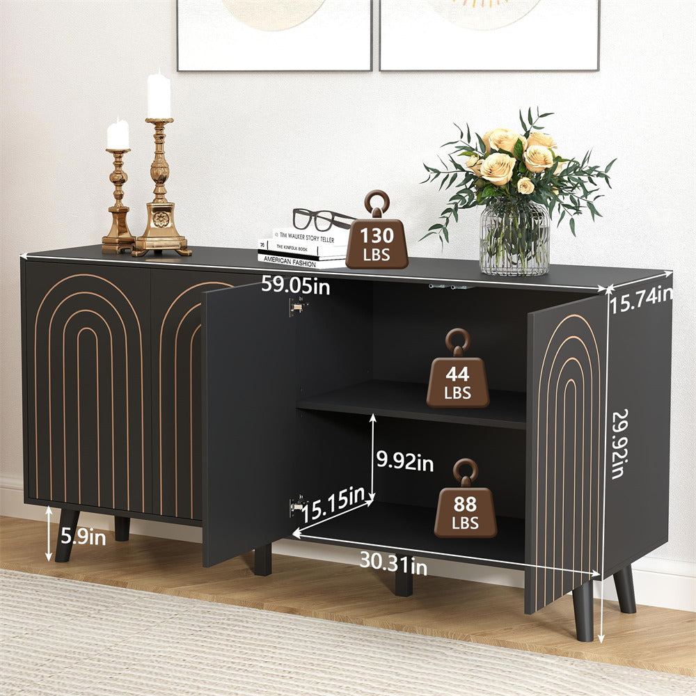 Versatile Functionality: This modern buffet sideboard features adjustable shelves, allowing you to customize the interior layout for storing books, displaying decorative items, or organizing everyday essentials effortlessly.