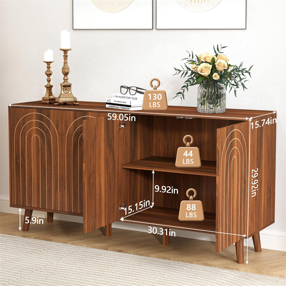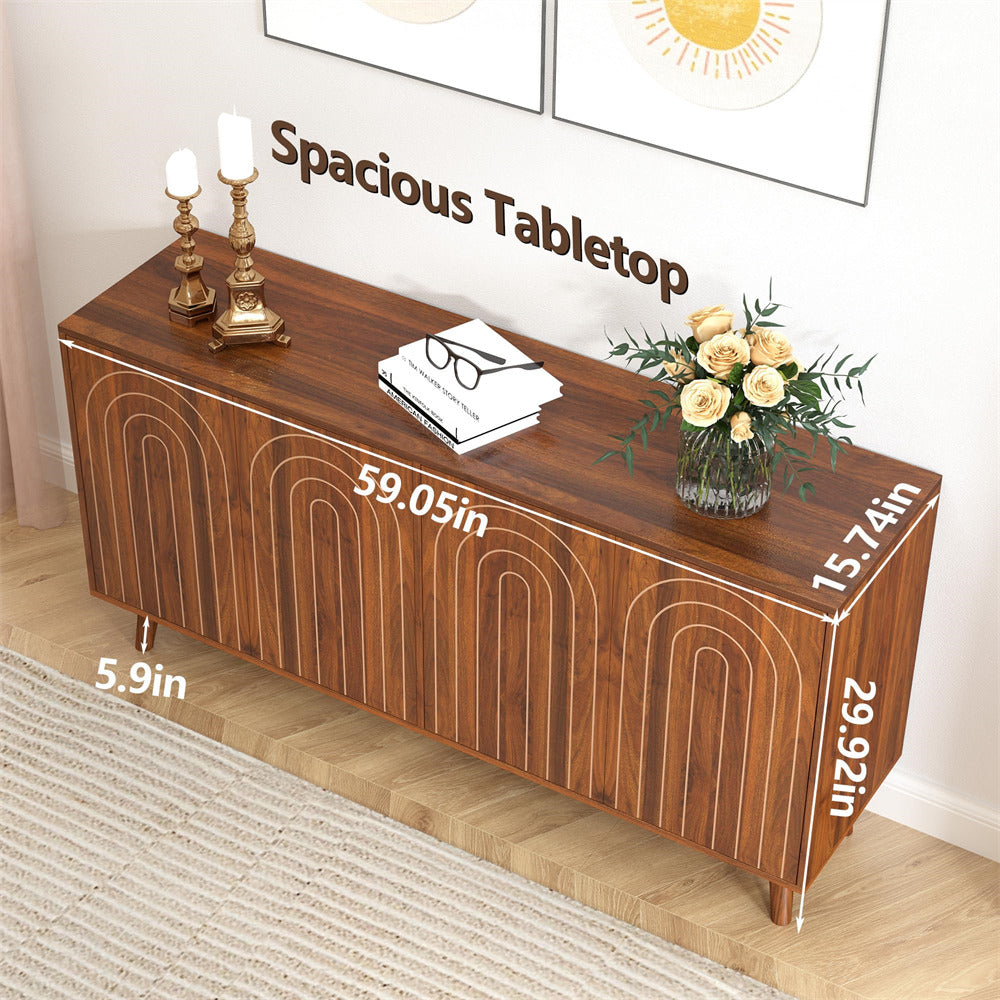 Perfect Dimensions: At 59.05 inches in breadth and 29.92 inches in elevation, this aesthetically pleasing buffet harmoniously integrates into your space without overpowering it, making it a fitting addition to any trendy abode.