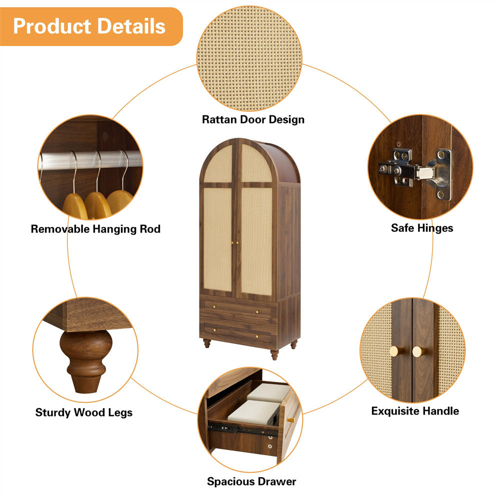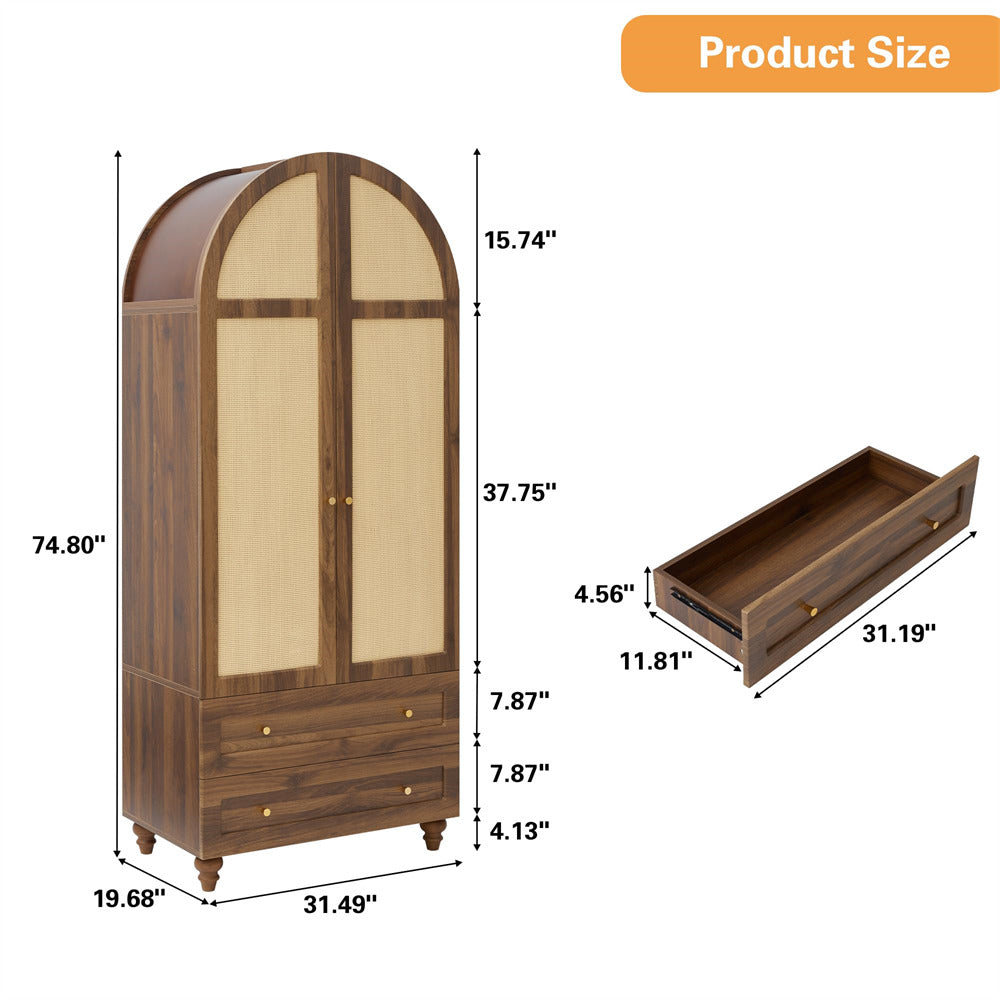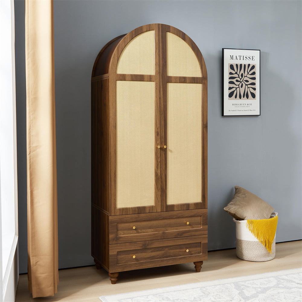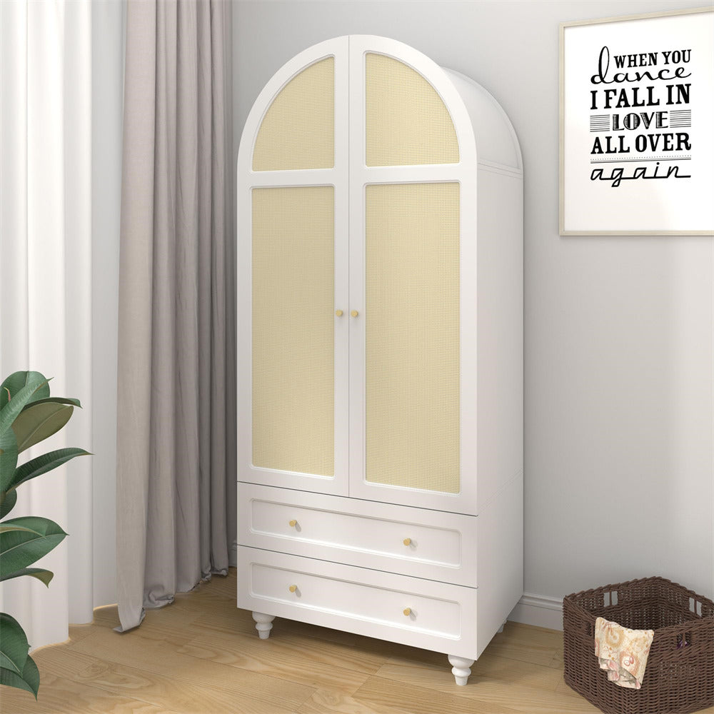 Sturdy & Durable Material: The bedroom armoire frame is made of premium and durable MDF board and engineered rattan materials, ensuring long-term use. Equipped with four wooden table legs that can withstand the weight of storage cabinet and placed object, keeping the closet balanced and won't wobble.