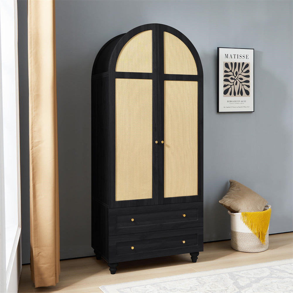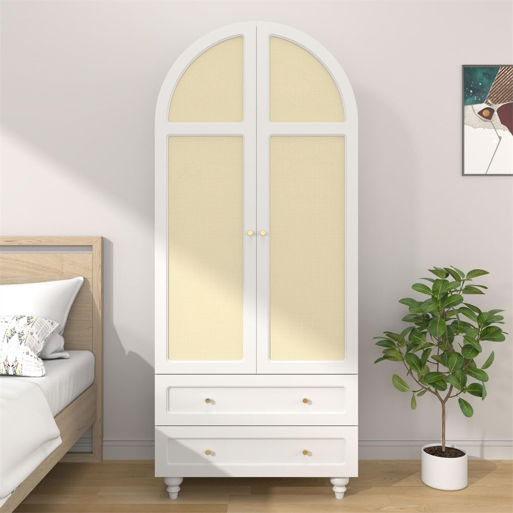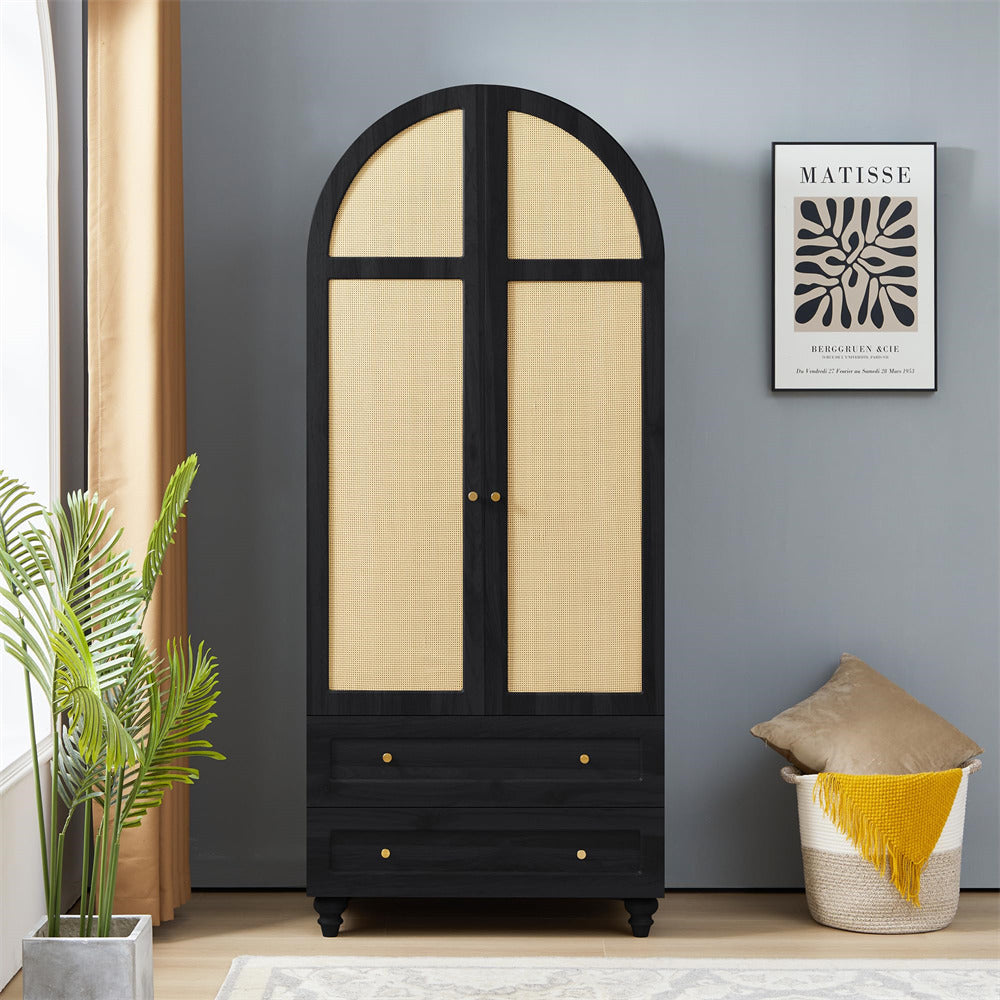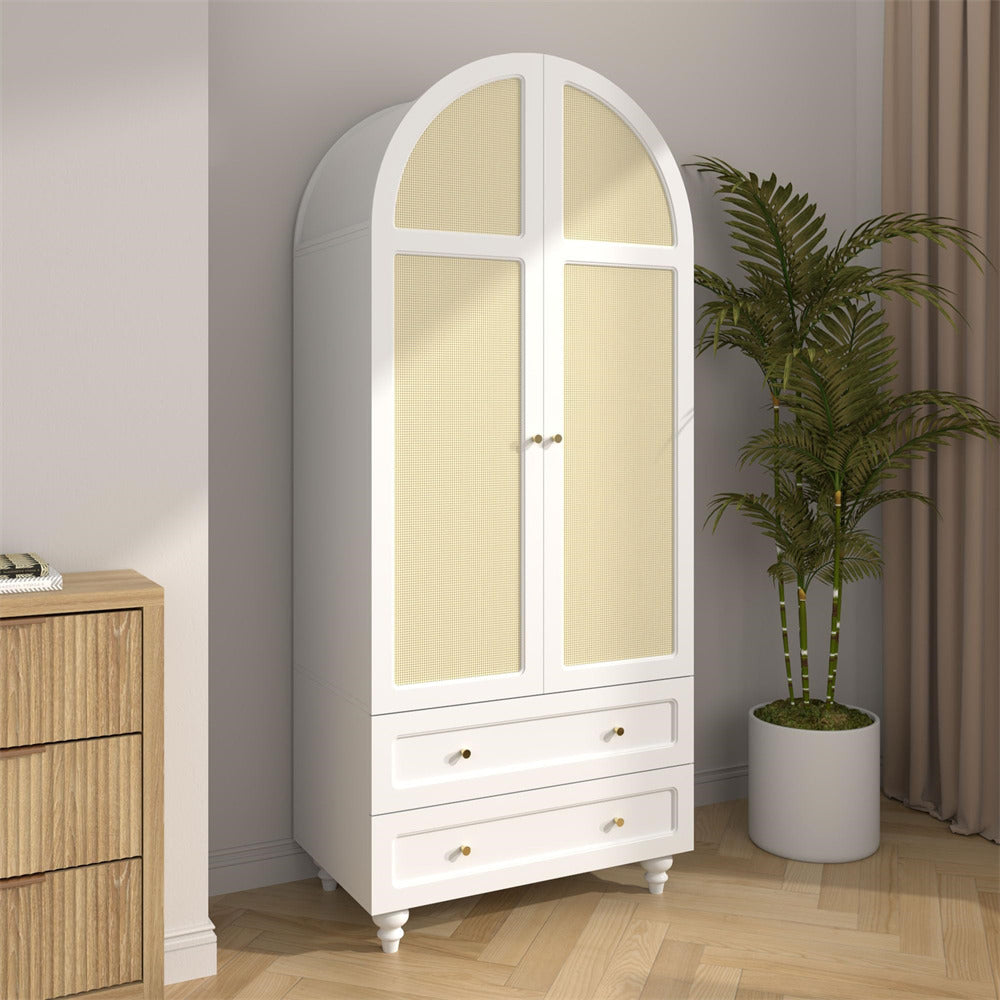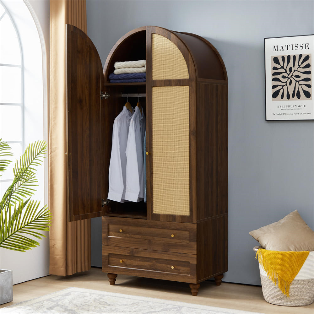 Sturdy & Durable Material: The bedroom armoire frame is made of premium and durable MDF board and engineered rattan materials, ensuring long-term use. Equipped with four wooden table legs that can withstand the weight of storage cabinet and placed object, keeping the closet balanced and won't wobble.