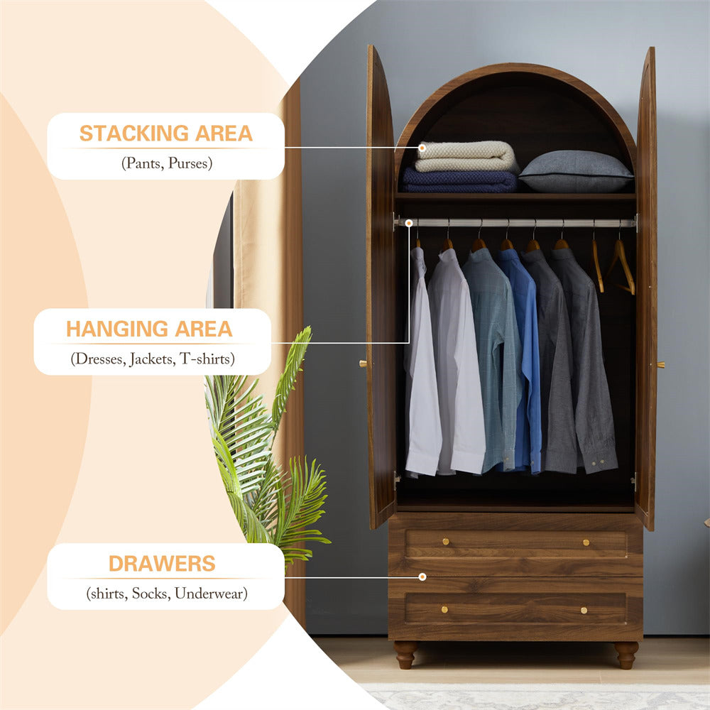 Versatile and Practical Storage Cabinet: This 2 doors wardrobe closet can be used not only as a closet but also as a storage cabinet. Perfect for bedroom, living room, dorm, apartment, hallway, laundry room, and other places. The simple and stylish design perfectly matches various home decor styles.