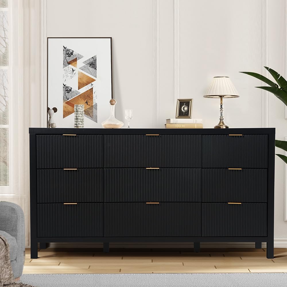 Multifunctional Storage Cabinet: The classic wave pattern drawer designs with smooth black surface is suitable for any decoration providing a modern and chic drawer cabinet for your exquisite home. This is a space-saving solution that can meet your storage needs at the head of the bed or living room, in closets, entryway and office. Besides, this drawer chest is an ideal for small spaces. It is suitable to be used as a makeup cabinet,bedroom dresser,accent cabinet or console table.