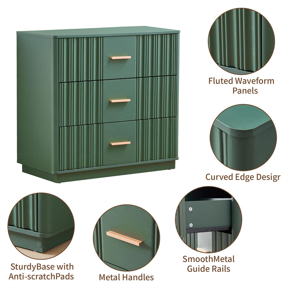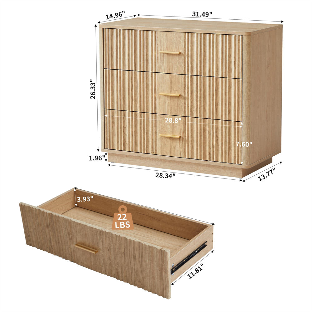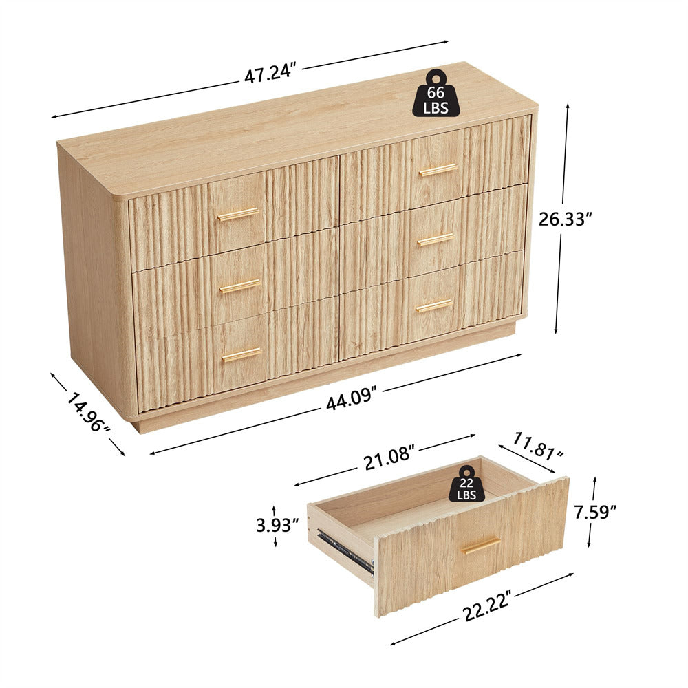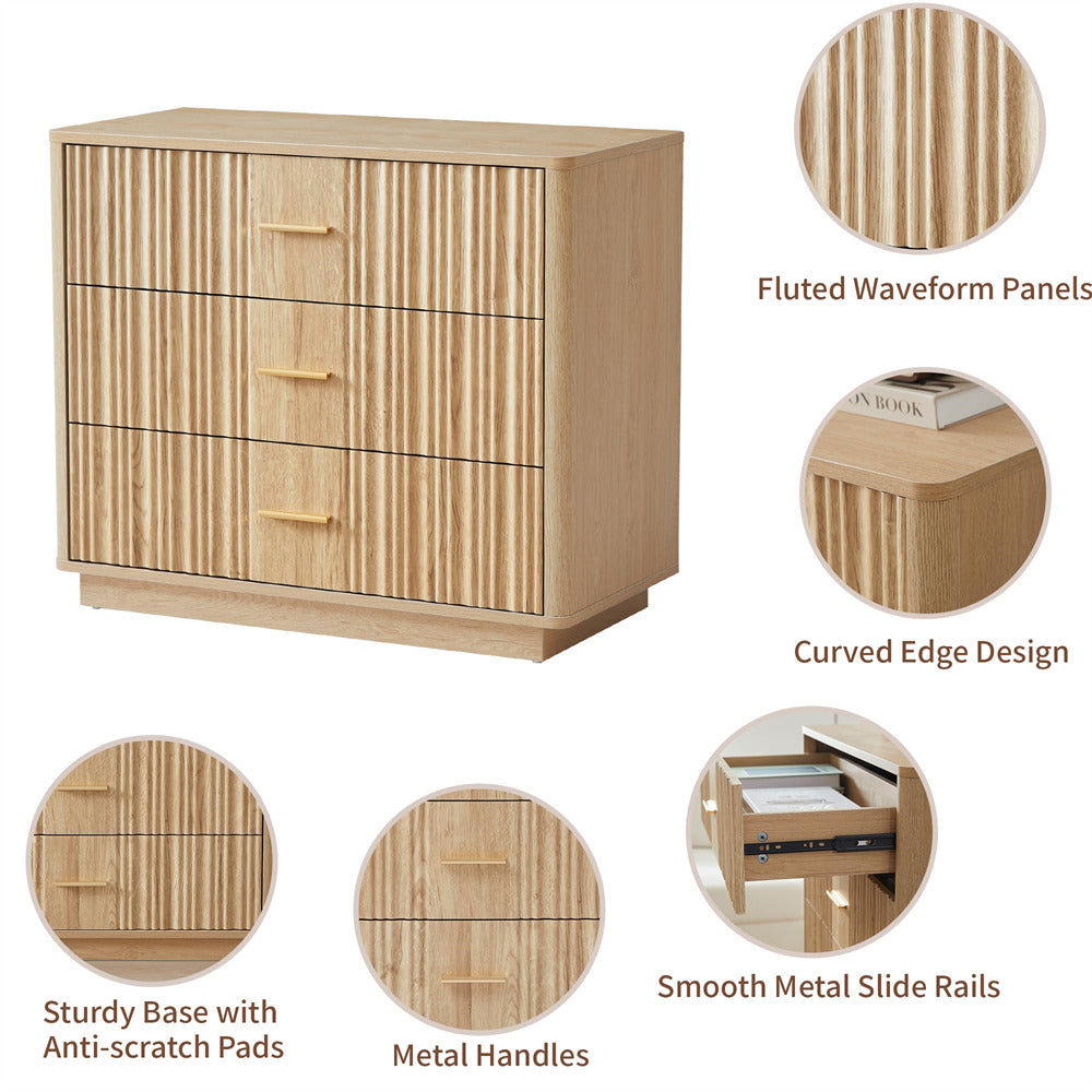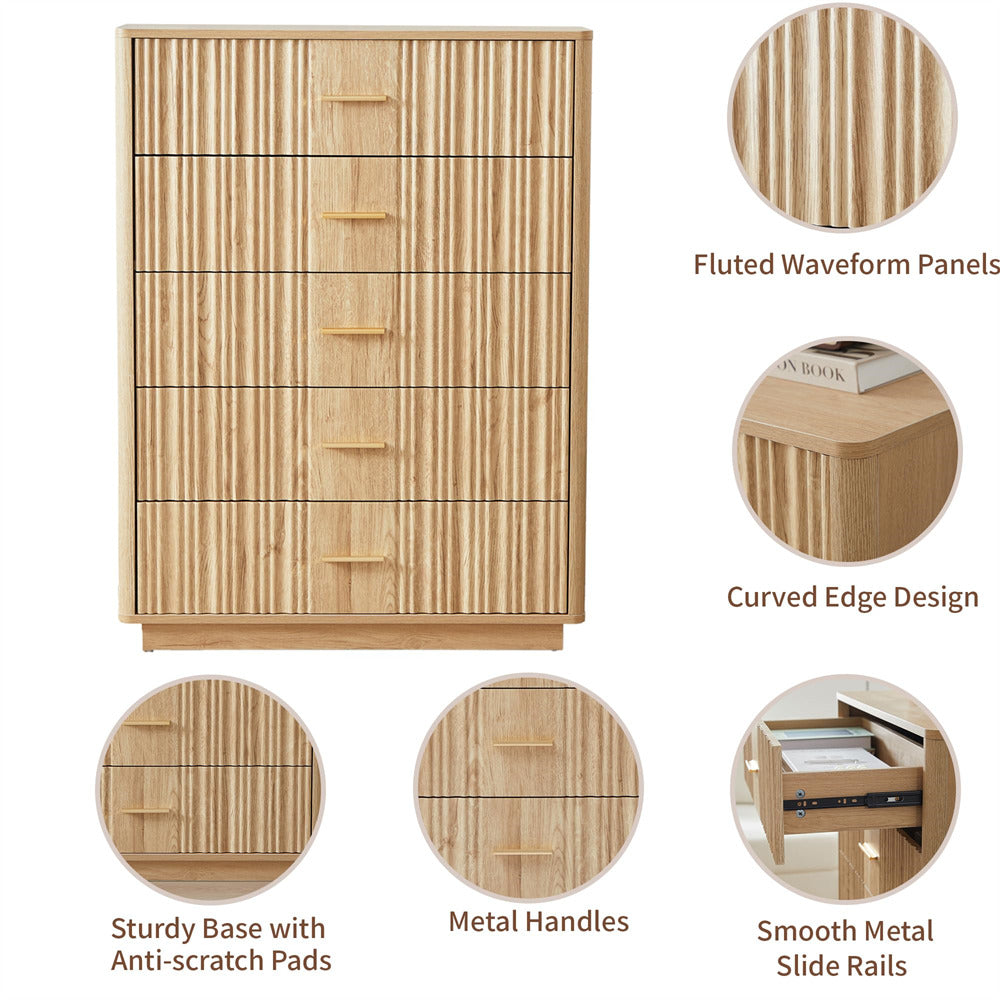 Modern Chic Design: The fluted waveform panel with sleek curved profile design is unique and elegant. This bedroom dresser is complete with metal handles, the smooth metal guide rail allows the drawer to be pulled out and closed easily and silently, it provides the drawers with durability.