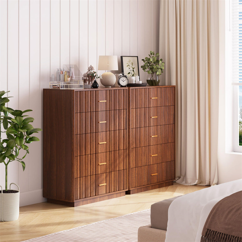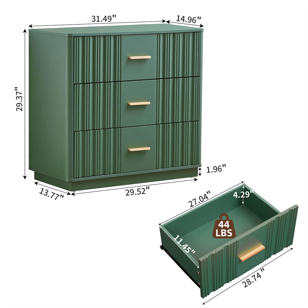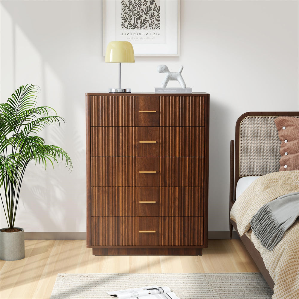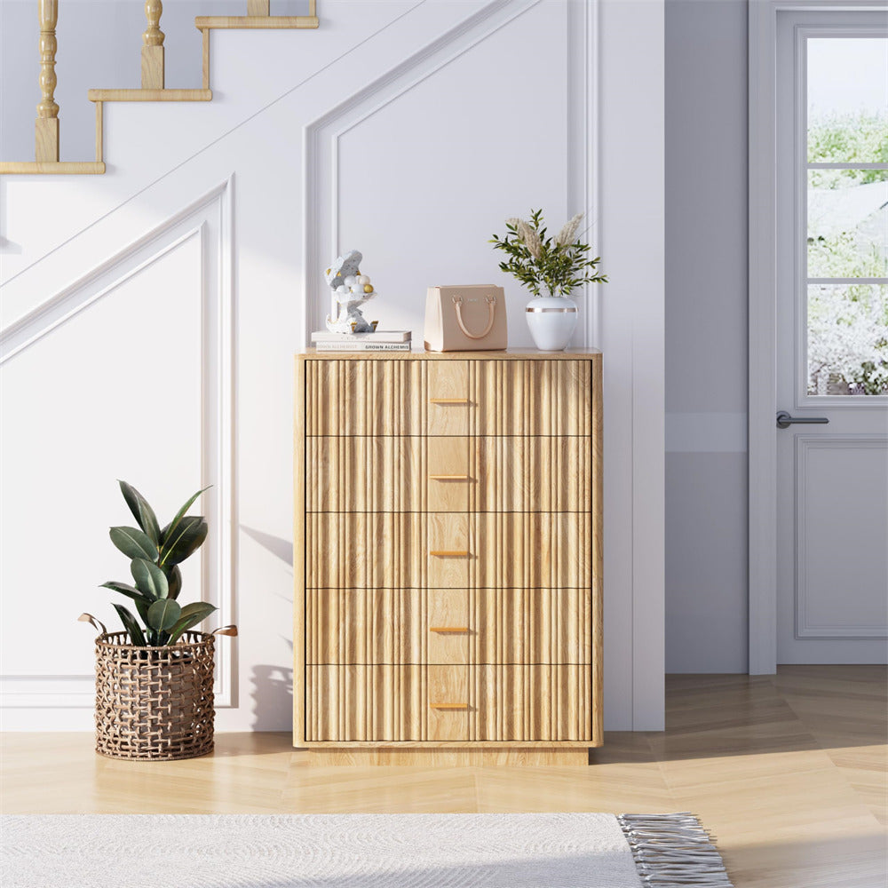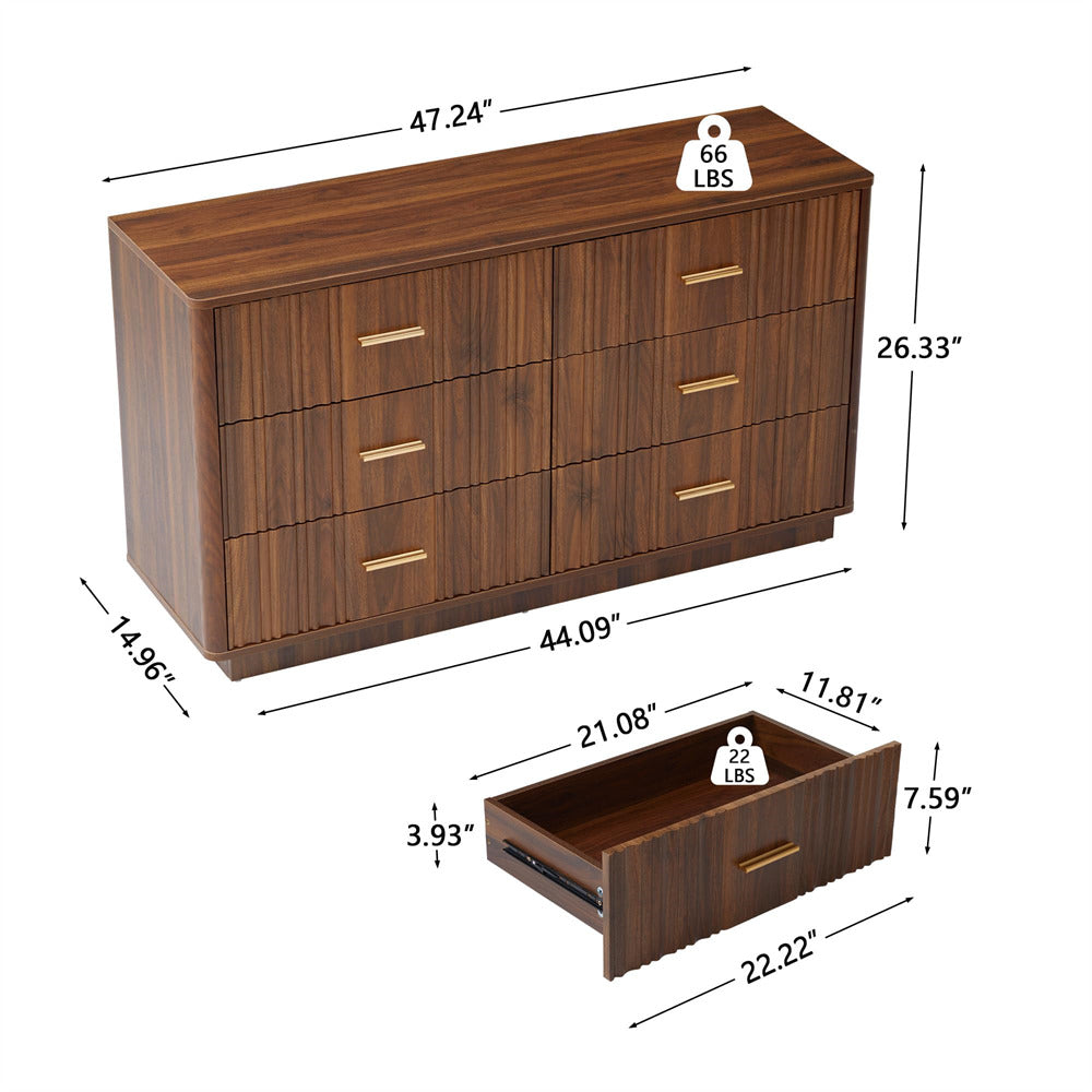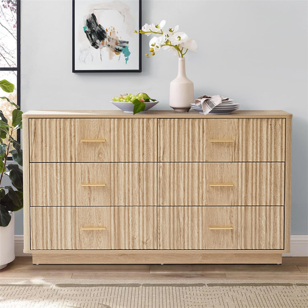 Modern Chic Design: The fluted waveform panel with sleek curved profile design is unique and elegant. This bedroom dresser is complete with metal handles, the smooth metal guide rail allows the drawer to be pulled out and closed easily and silently, it provides the drawers with durability.
