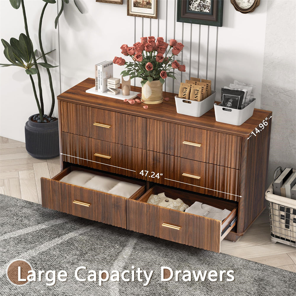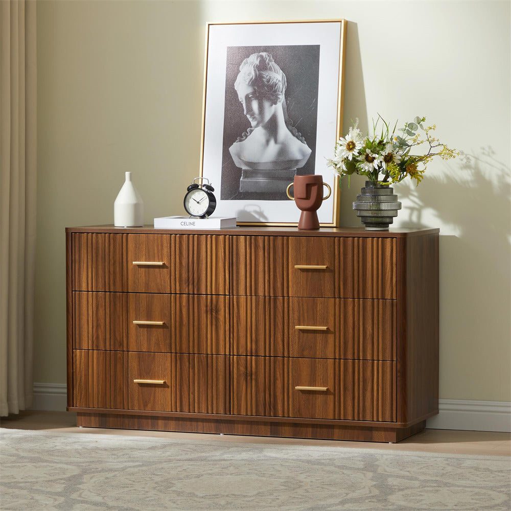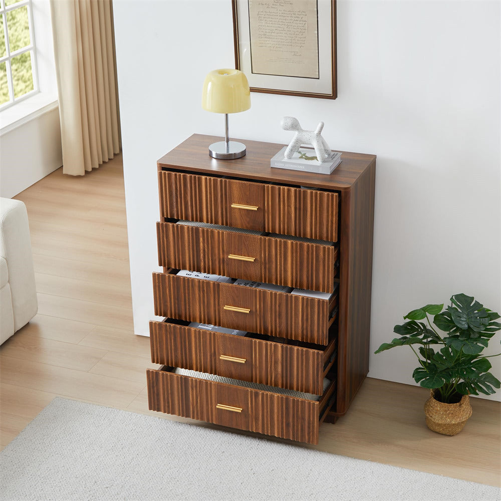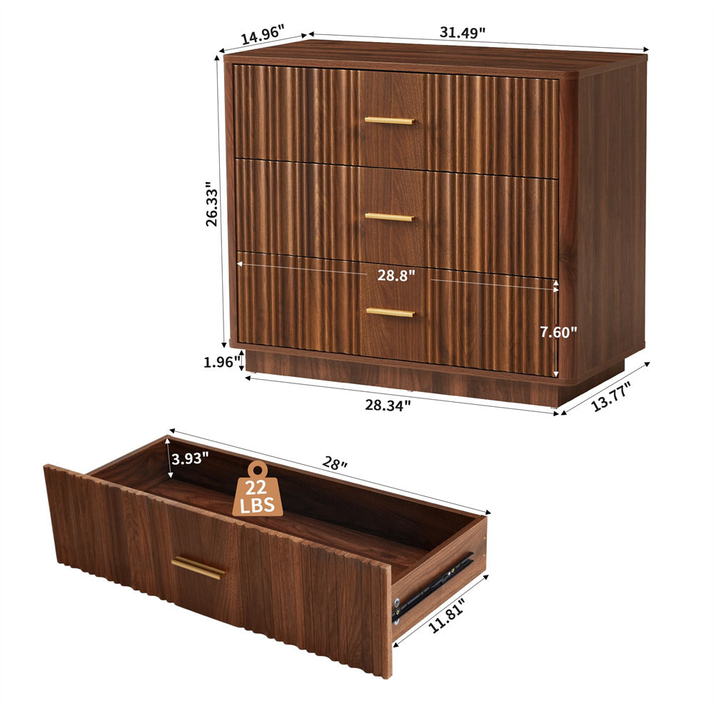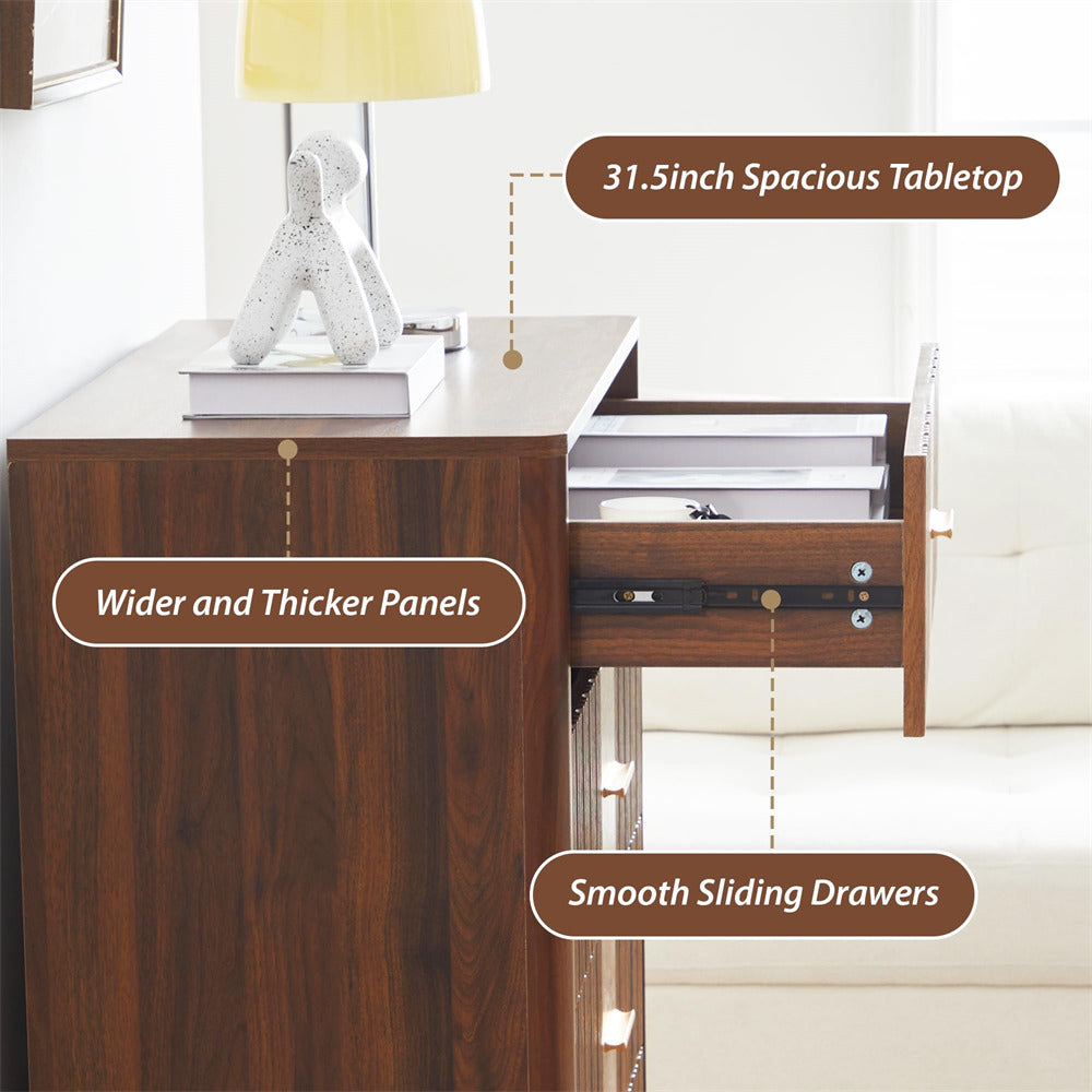 Modern Chic Design: The fluted waveform panel with sleek curved profile design is unique and elegant. This bedroom dresser is complete with metal handles, the smooth metal guide rail allows the drawer to be pulled out and closed easily and silently, it provides the drawers with durability.