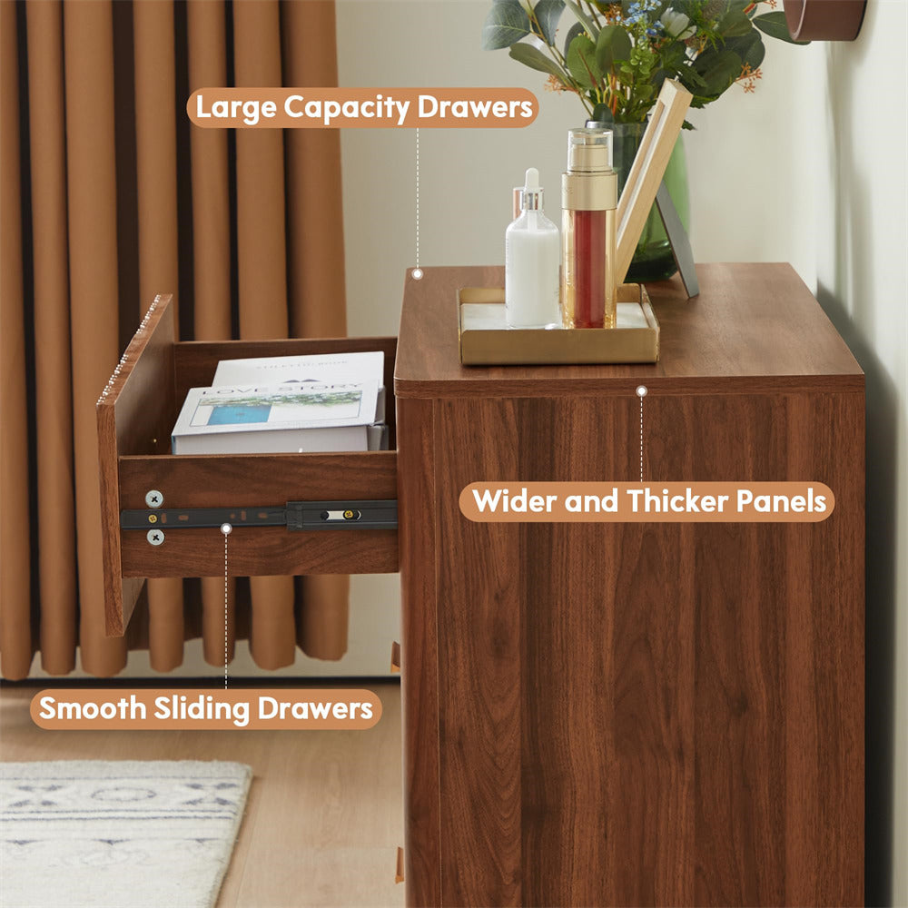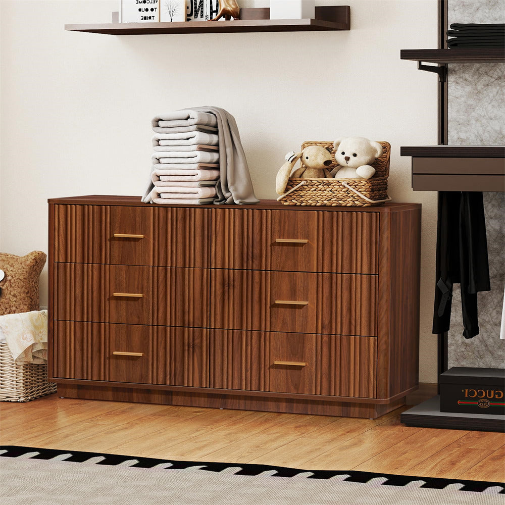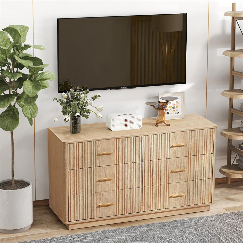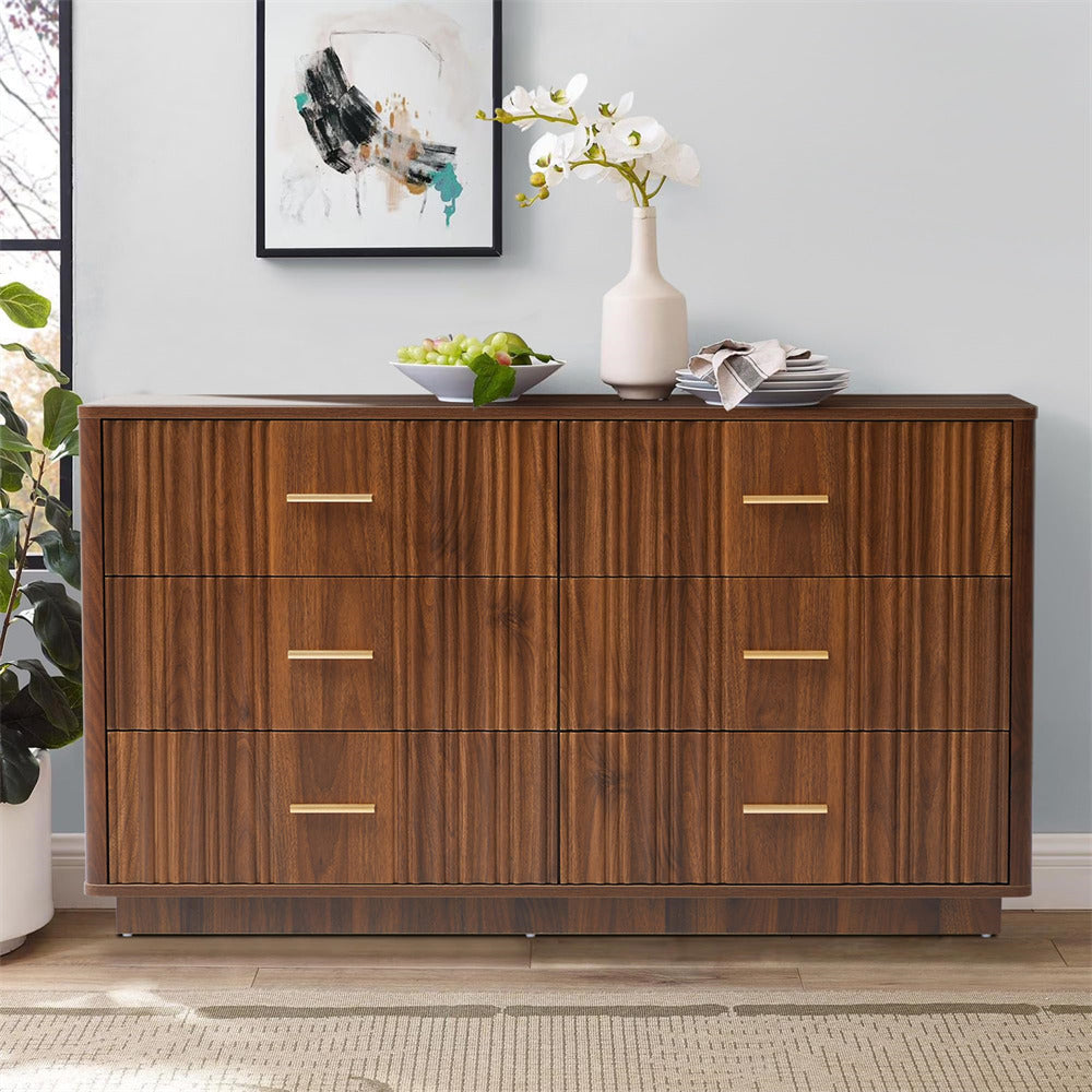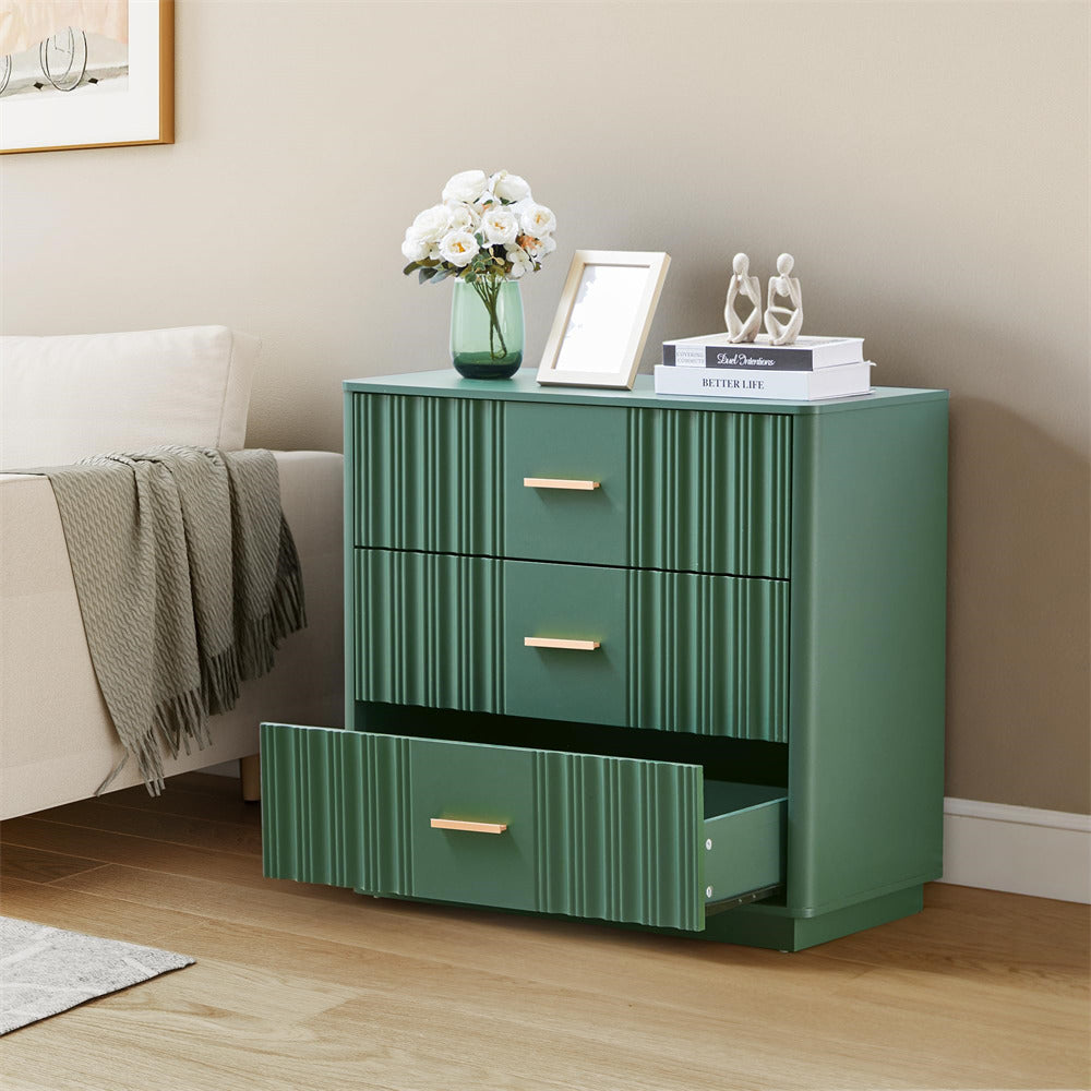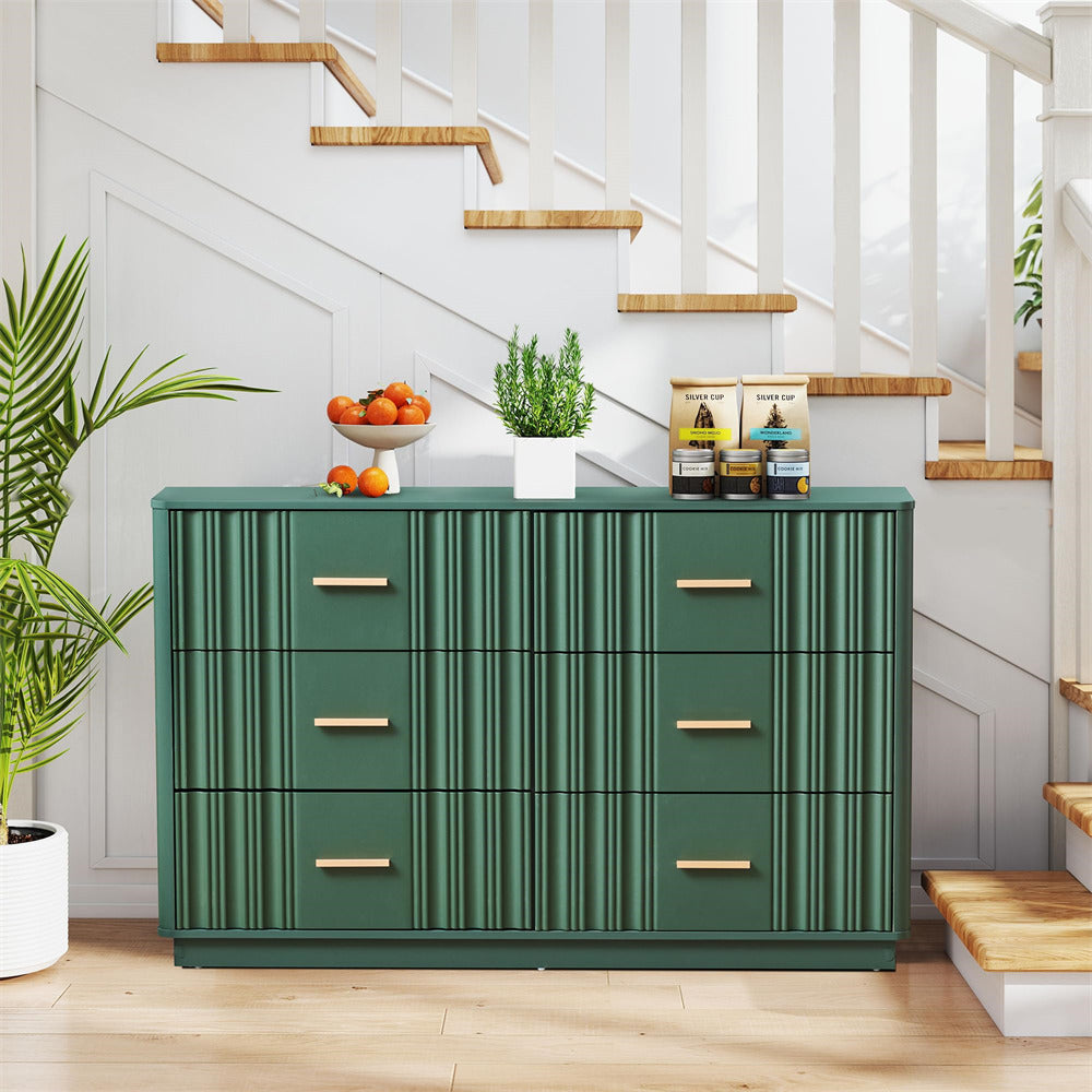 Modern Chic Design: The fluted waveform panel with sleek curved profile design is unique and elegant. This bedroom dresser is complete with metal handles, the smooth metal guide rail allows the drawer to be pulled out and closed easily and silently, it provides the drawers with durability.