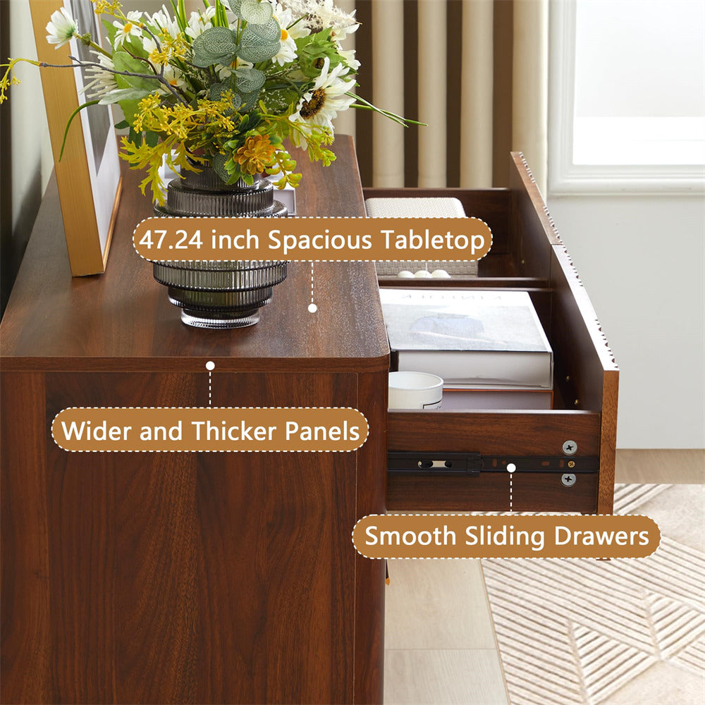 Versatile Wood Dresser: Except for being wooden dresser in your bedroom or as a console table in your living room, this storage cabinet also can be used as nightstand or side table. This long dresser could easily fit in various spaces such as living room, bedroom, hallway, entryway and closet. It is an ideal choice for small spaces such as apartment or dorm room.