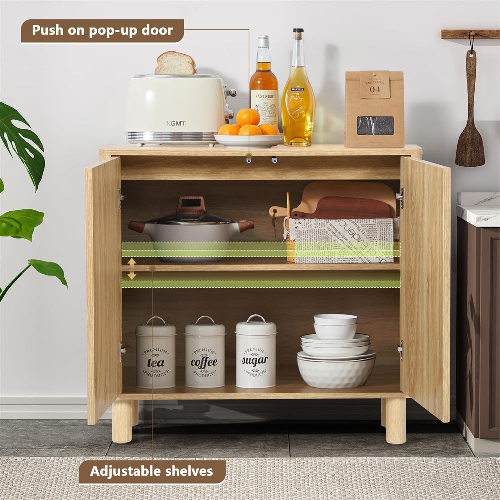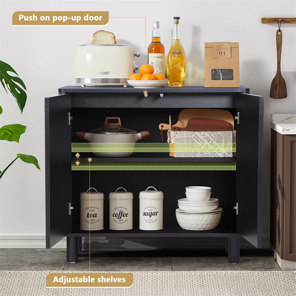 Product Advantage: The kitchen console adopts an arched decorative door and a side arc design, suitable for children and families to use, perfectly balancing modern aesthetics and functional design. Exquisite workmanship, spacious desktop space, adjustable shelves, providing ample storage space for your daily storage. Solid wood legs ensure higher durability and are equipped with anti rollover devices for safer and more reliable use.