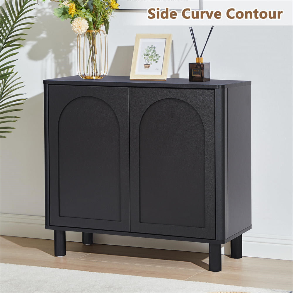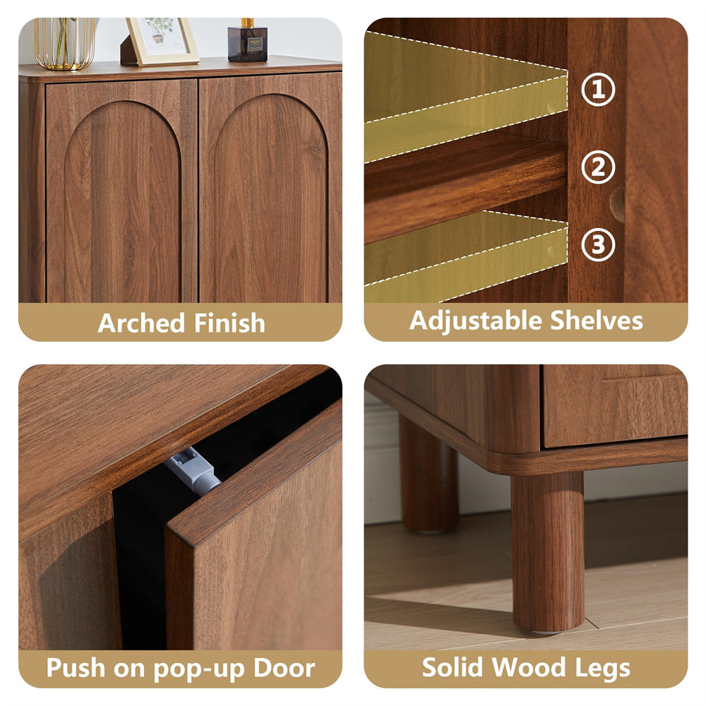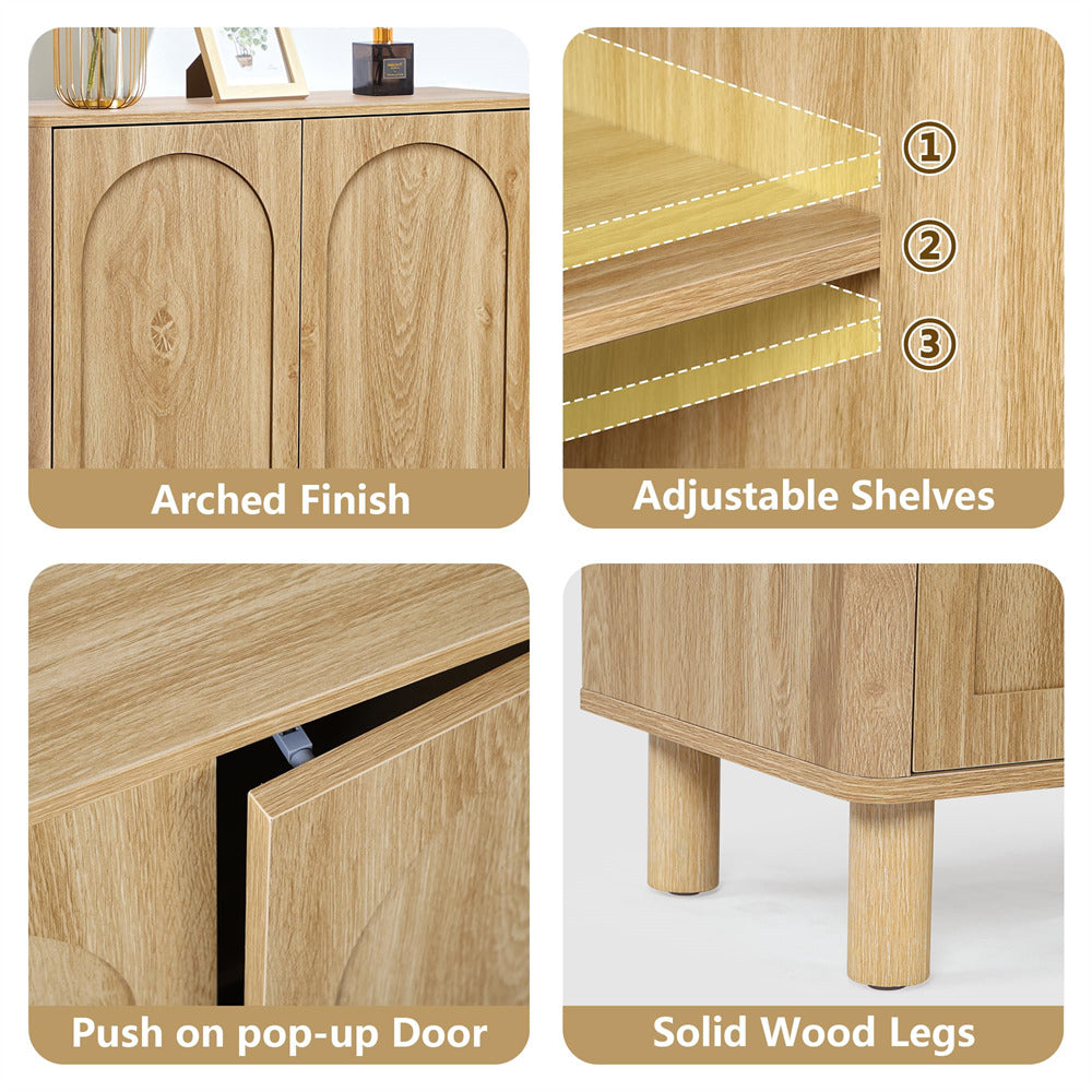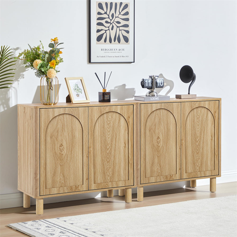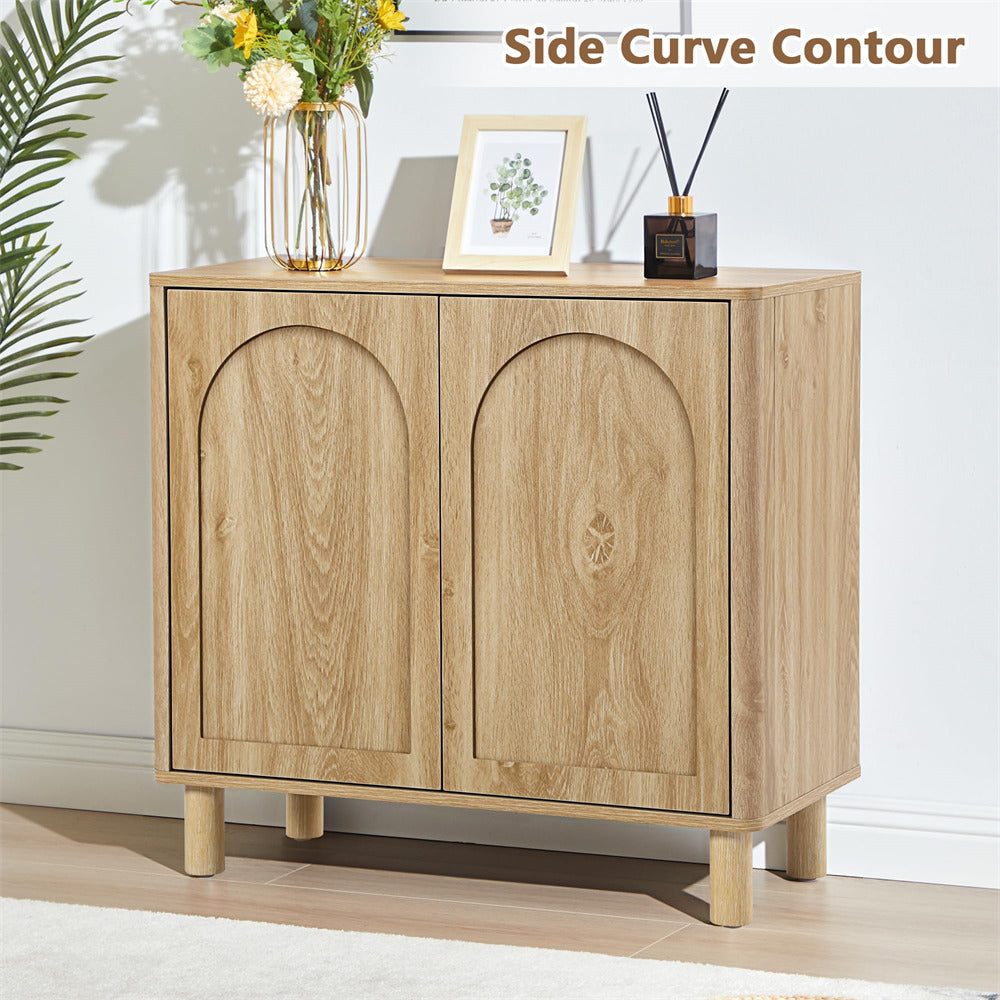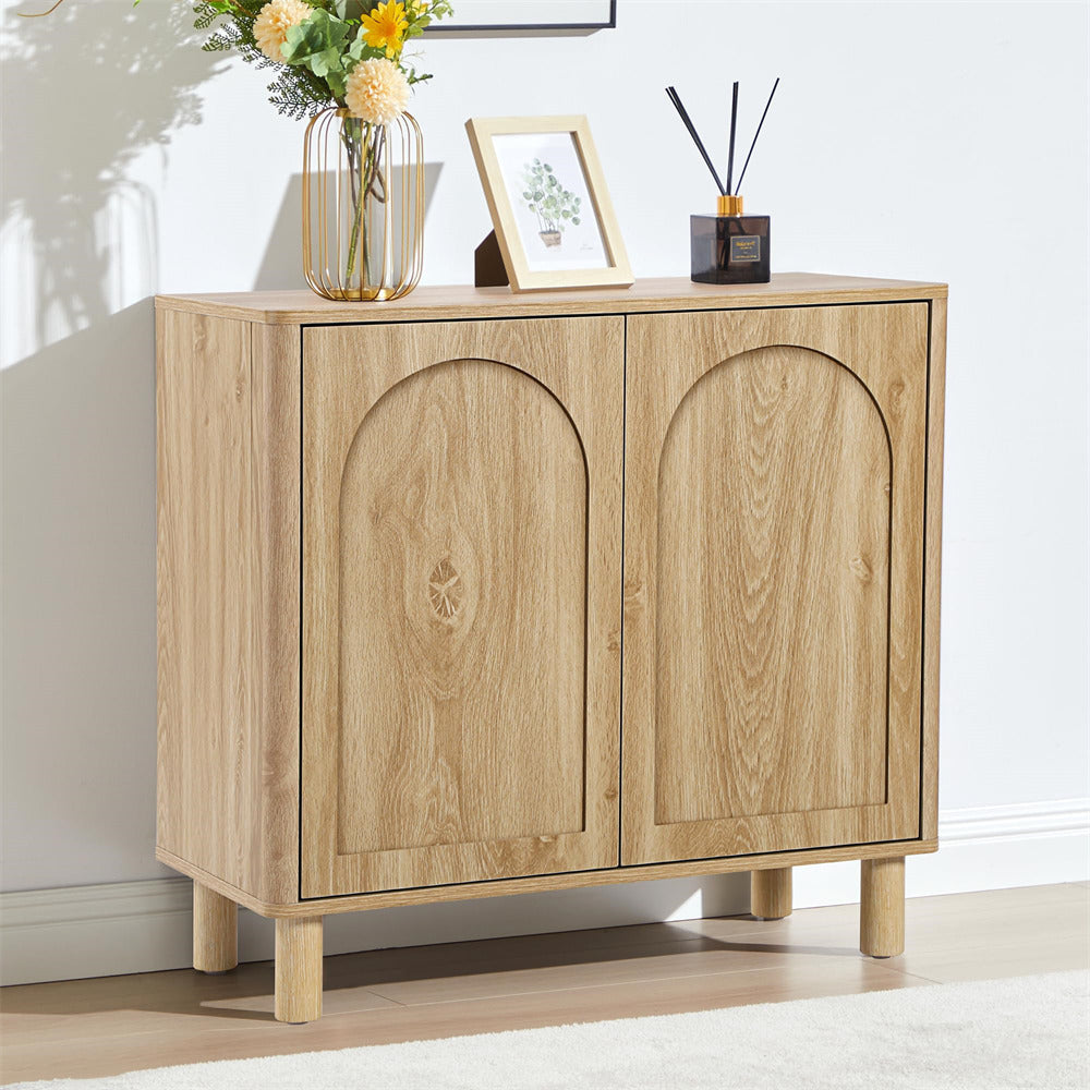 Modern Sideboard Storage Cabinet Console Table with Arched Finish Doors and Solid Wood Legs