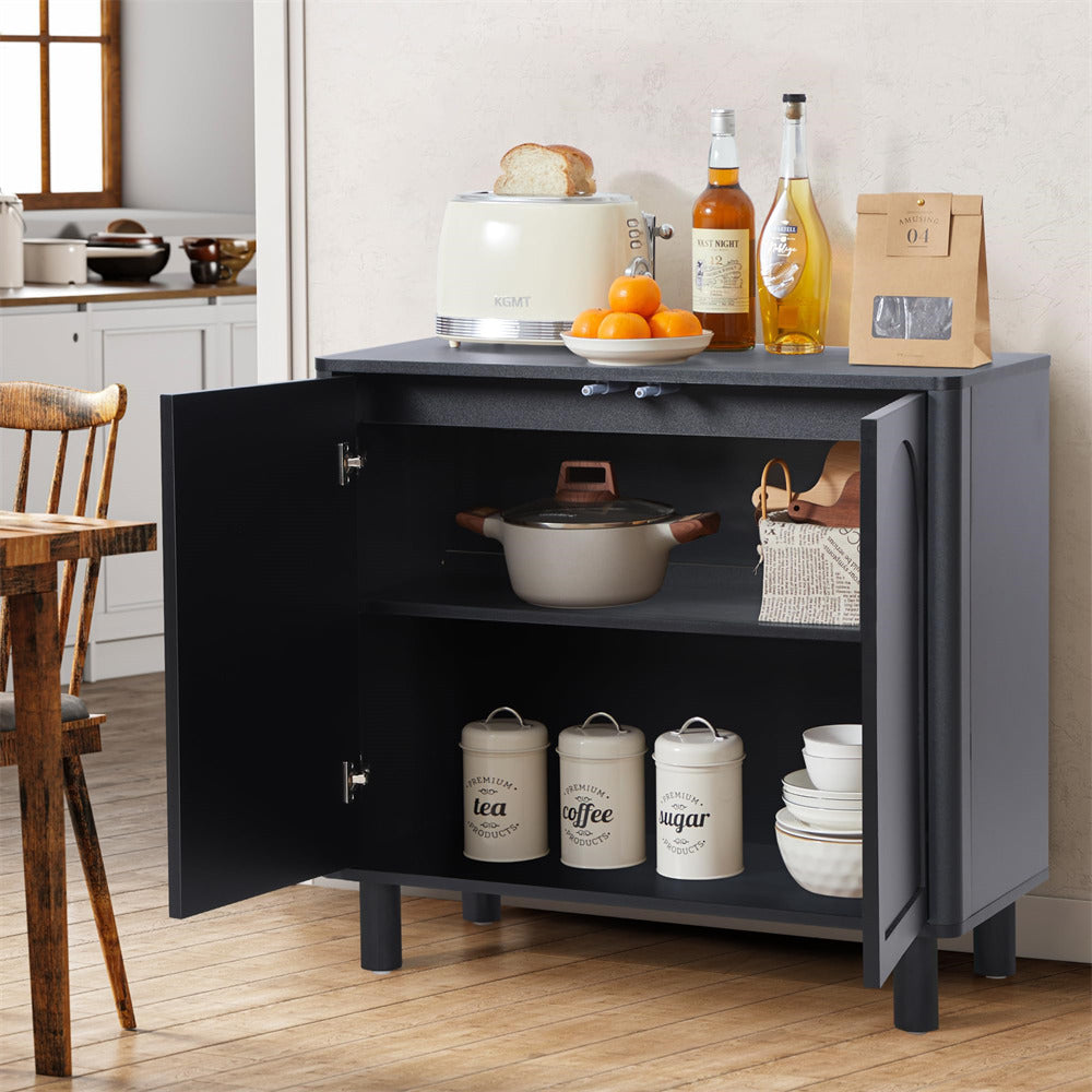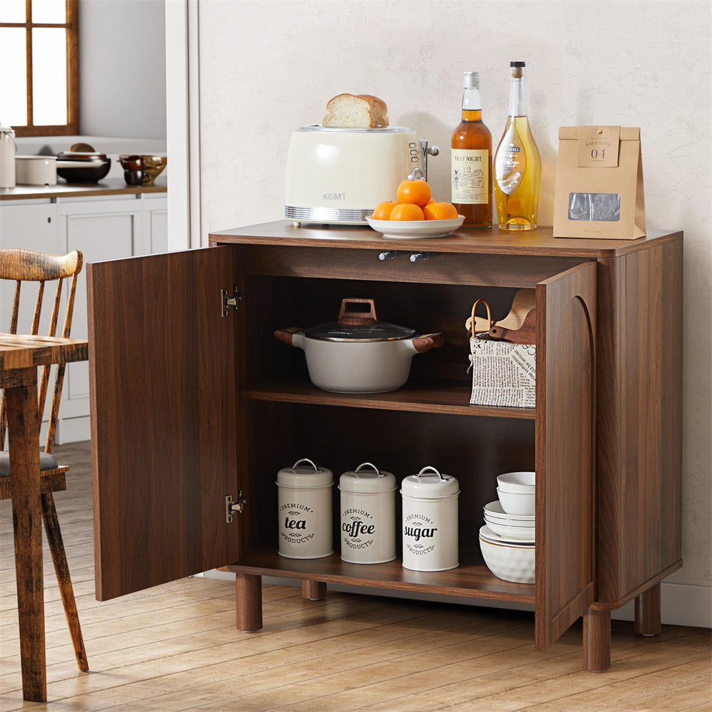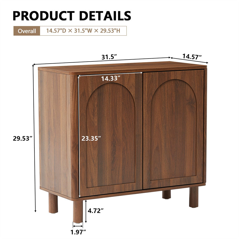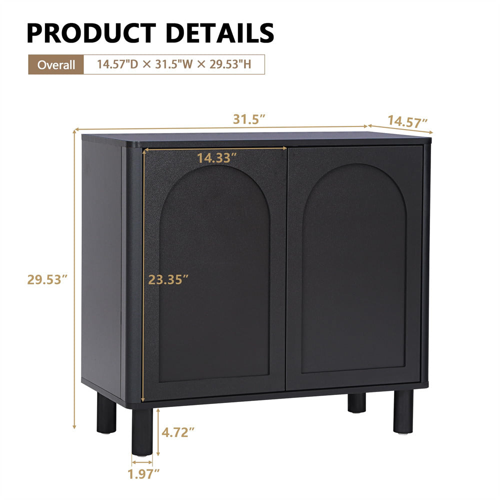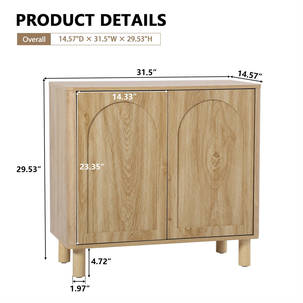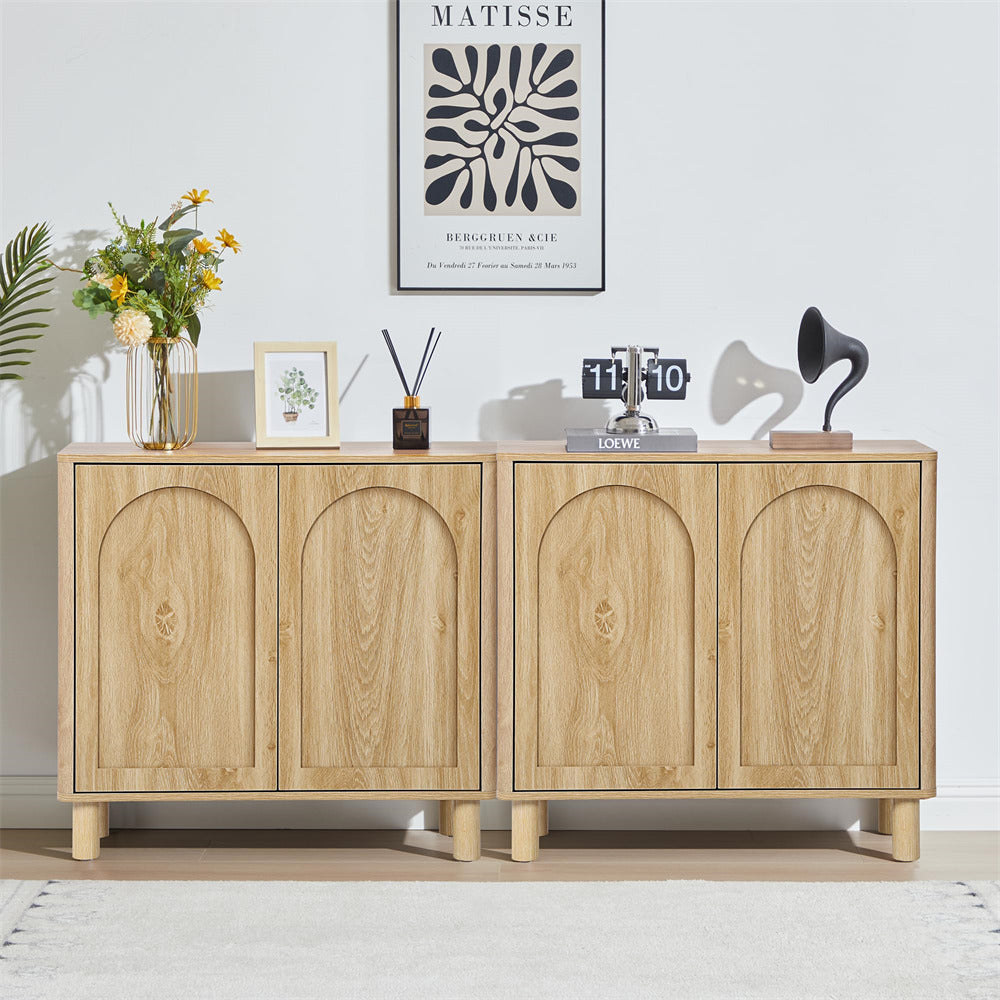 Modern Sideboard Storage Cabinet Console Table with Arched Finish Doors and Solid Wood Legs