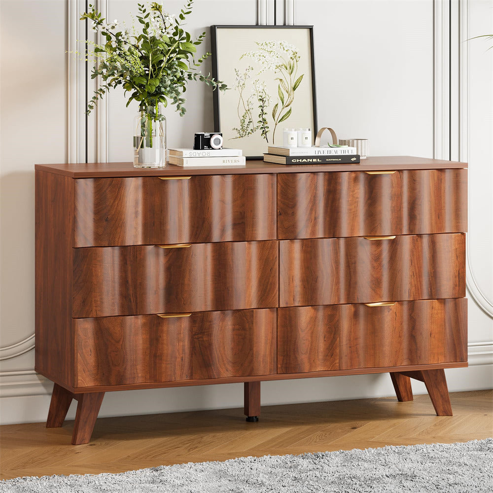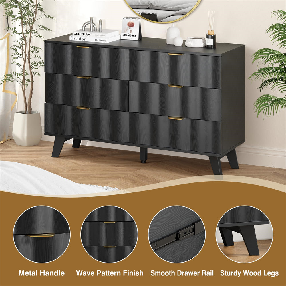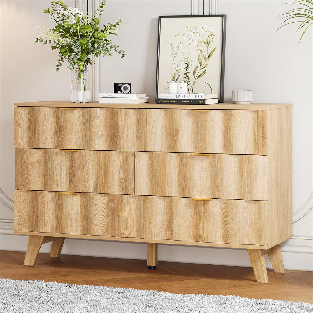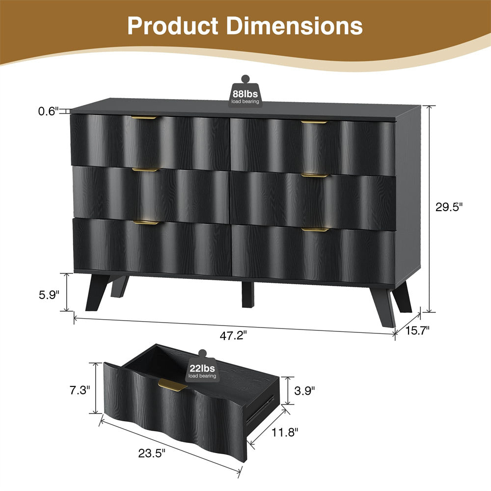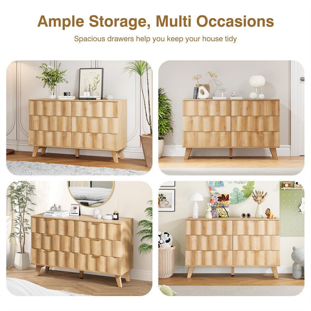Modern 6 Drawer Dresser: Our chest of 6 drawers features wave pattern finish on the drawers, combined with the wood grain and tapered wood legs that create a modern, bohemian style. A fluted drawer dresser not only help you tidy your room, but also serve as a decoration to make your home more attractive.