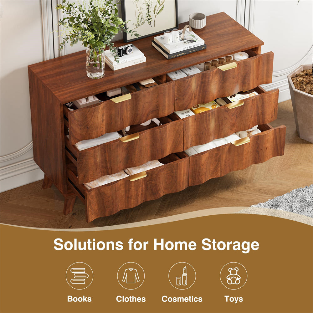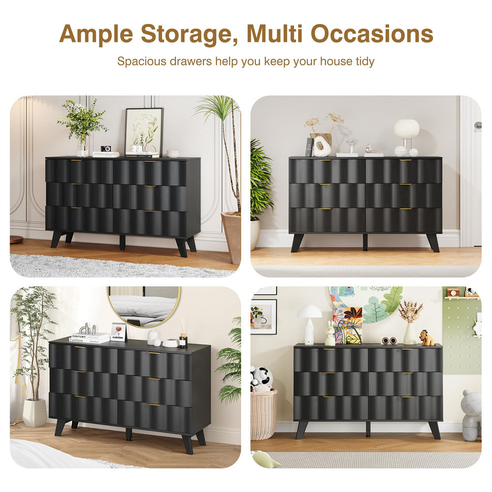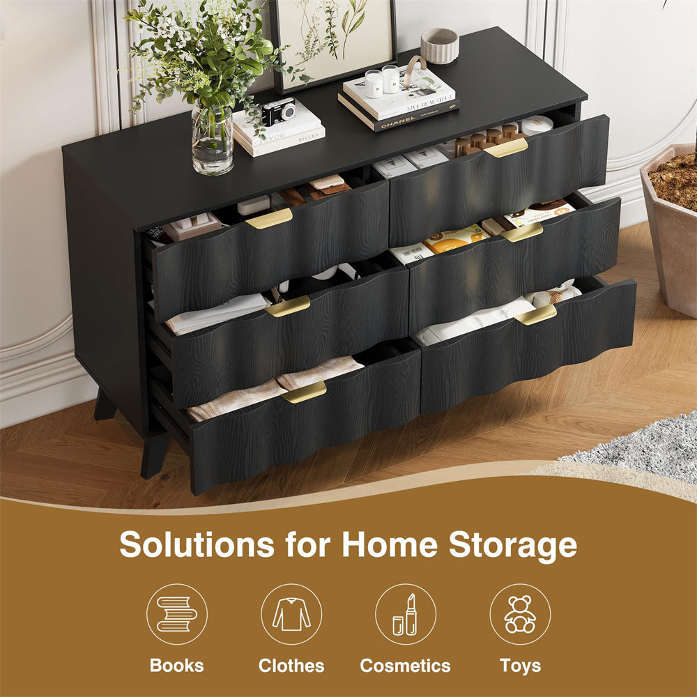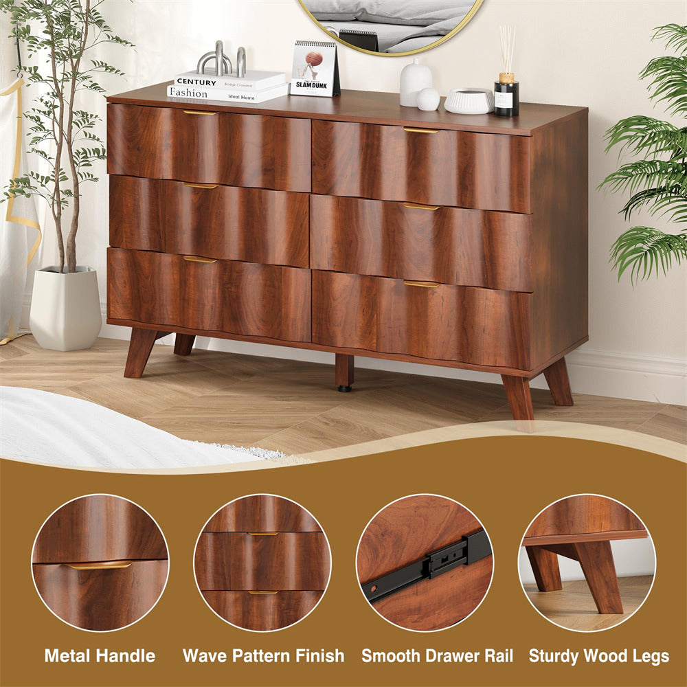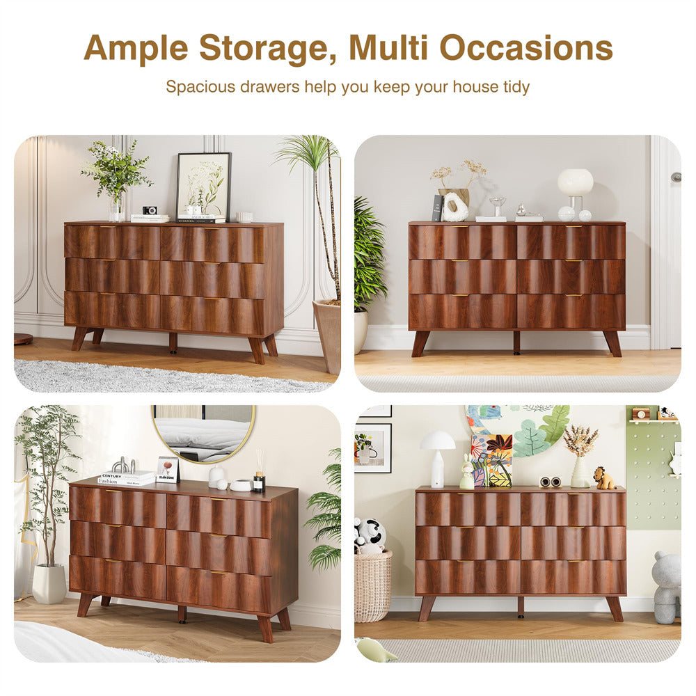 Modern 6 Drawer Dresser: Our chest of 6 drawers features wave pattern finish on the drawers, combined with the wood grain and tapered wood legs that create a modern, bohemian style. A fluted drawer dresser not only help you tidy your room, but also serve as a decoration to make your home more attractive.